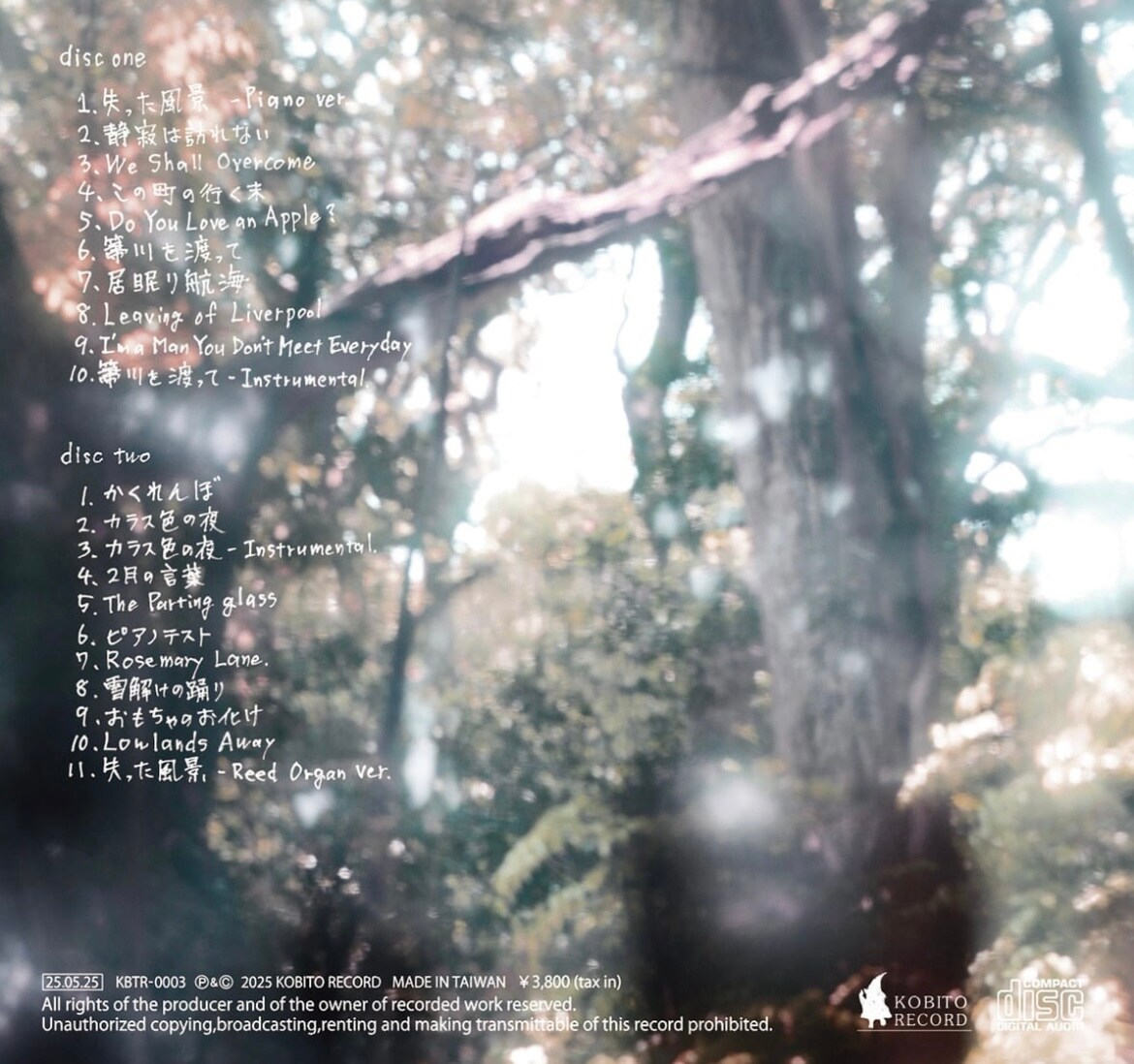 ライブで聴いたあの曲、レアな曲、初音源化の曲もあります。約10年前に録音し、完成まで至らなかったそうですが、本人の居なくなった後に偶然発見されたデモテープというコンセプト、「失った風景」というタイトル、この活動休止期間を含め、このタイミングで発表されるのが、運命だったとさえ思えます。