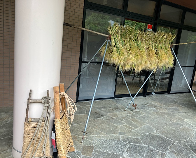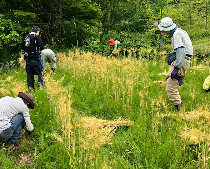 まずは、大麦の収穫…の前に、麦を縛る稲藁の準備から。