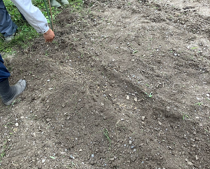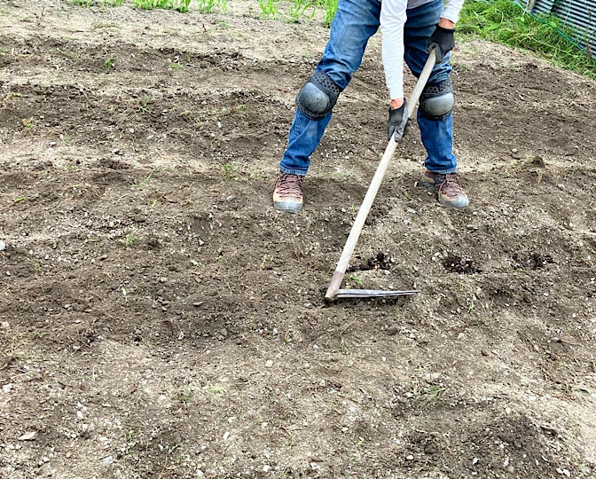 どちらも鍬でササっと土を掬ってかけ、鍬の背でちょんちょんと鎮圧します。
