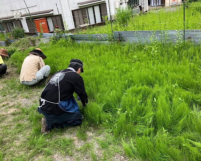 里山保全活動では、鍬の使い方っつったら、田おこしと、サトイモ掘りのやり方しか教わってなかったからな〜!!