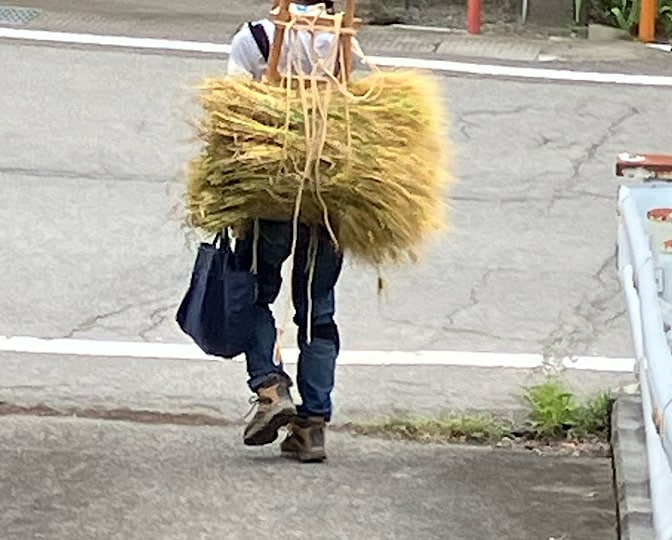 欲張りばあさんの田んぼで働いた太郎が、「報酬は持てるだけのイネだ!」 って言われて、太郎はぜーーーんぶ背負子に括り付けて、持って行ってしまったのだ!!