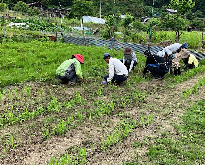 その後、甲州モロコシと大豆を蒔くために耕す班と、鹿よけネット班に分かれました。