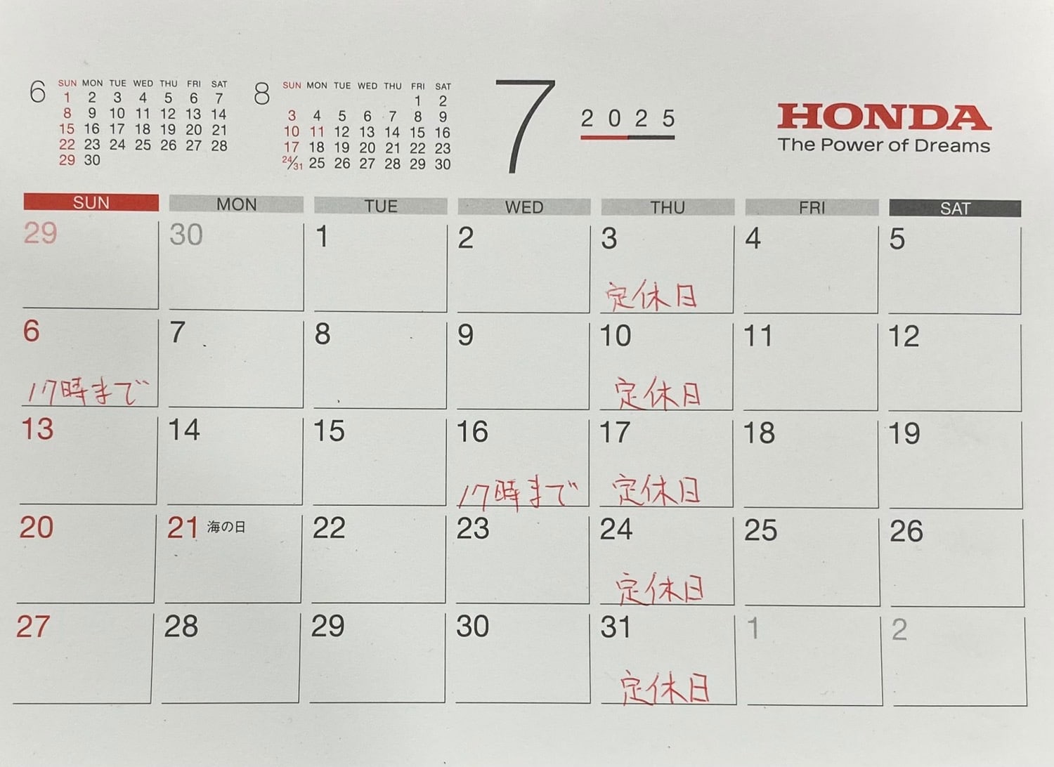 7月の営業日
