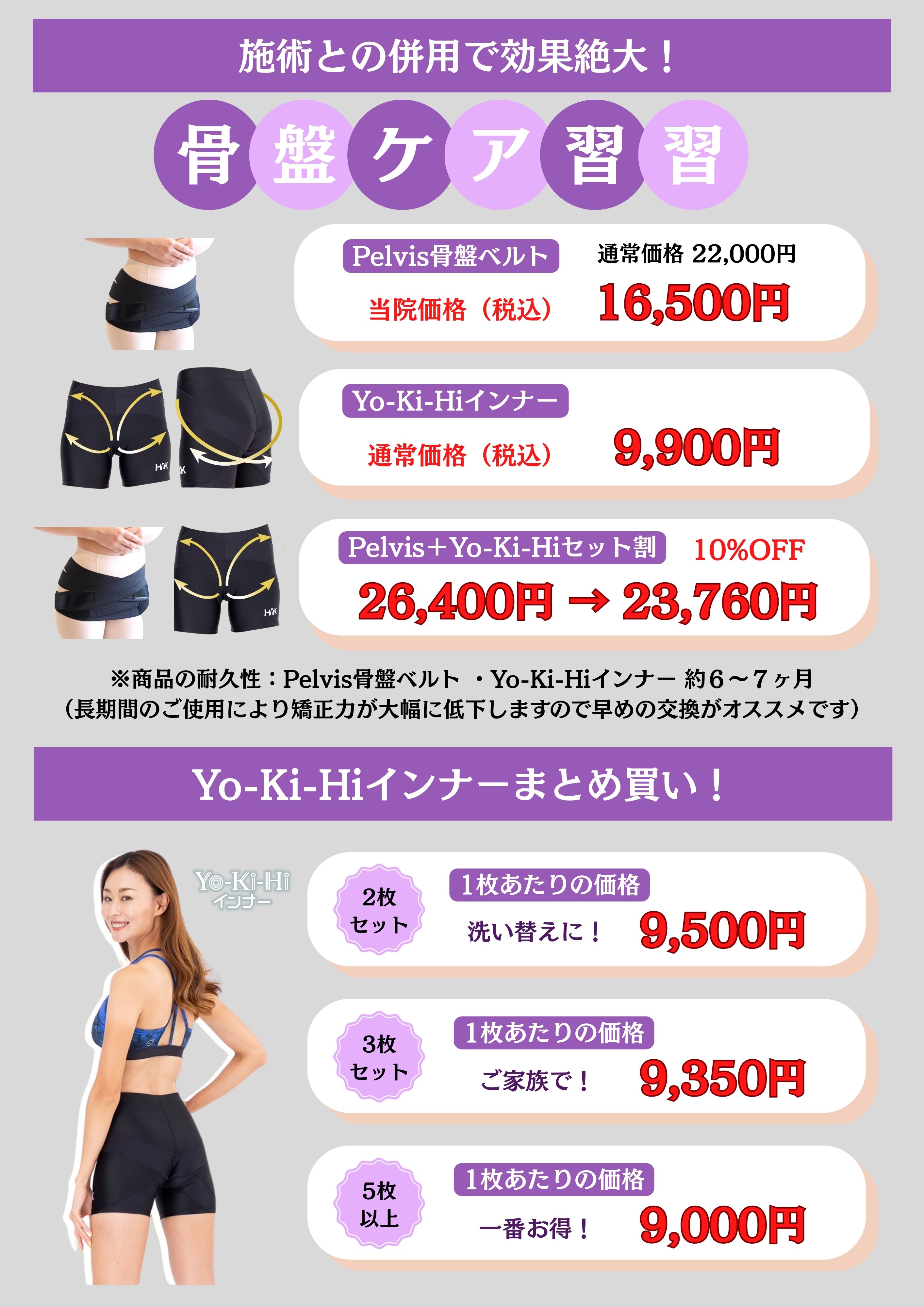 【Pelvis骨盤ベルト・Yo-Ki-Hiインナー 価格改定のお知らせ!】