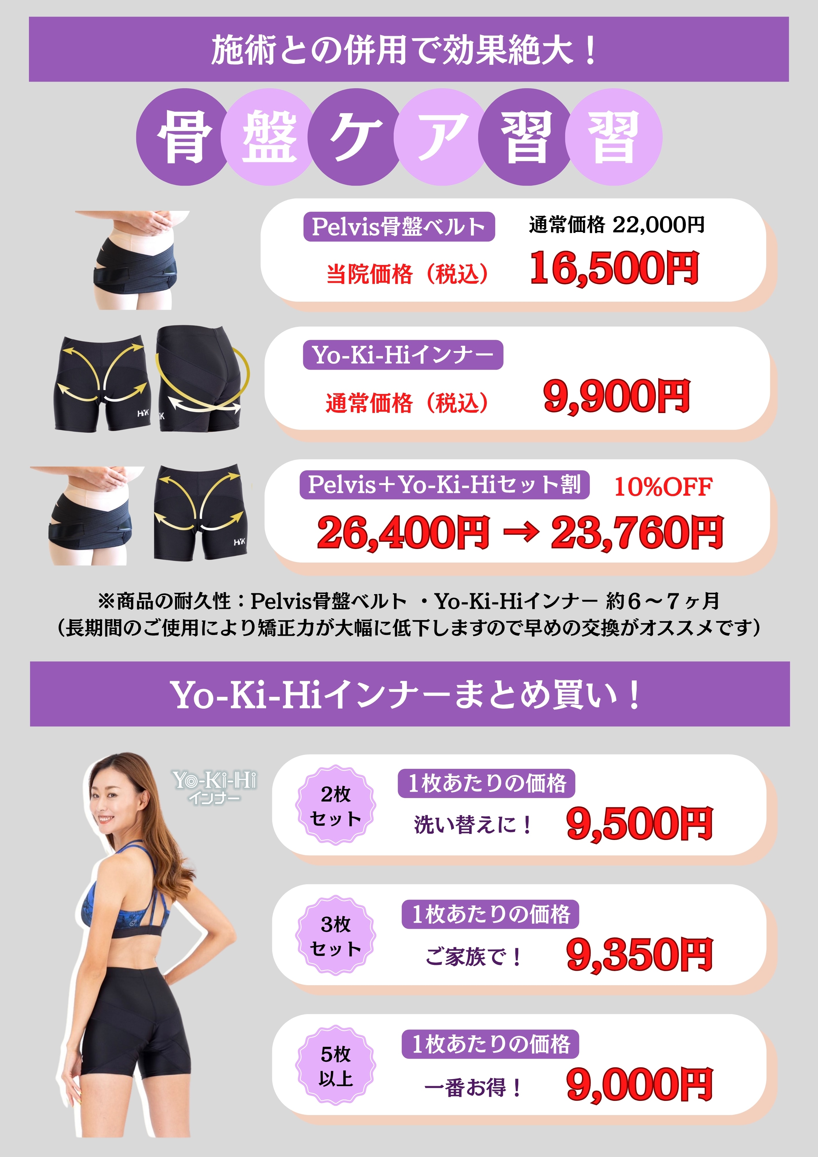 【Pelvis骨盤ベルト・Yo-Ki-Hiインナー 価格改定のお知らせ!】