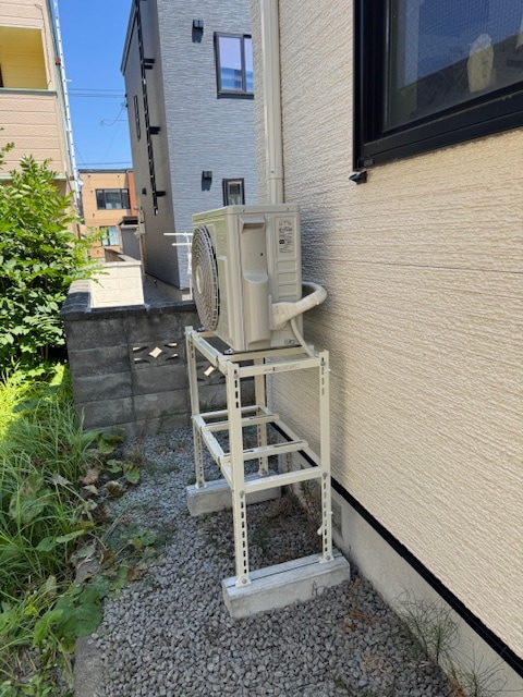 今回は二階設置で、下置き台を使用し北海道の冬も室外機が痛まないように