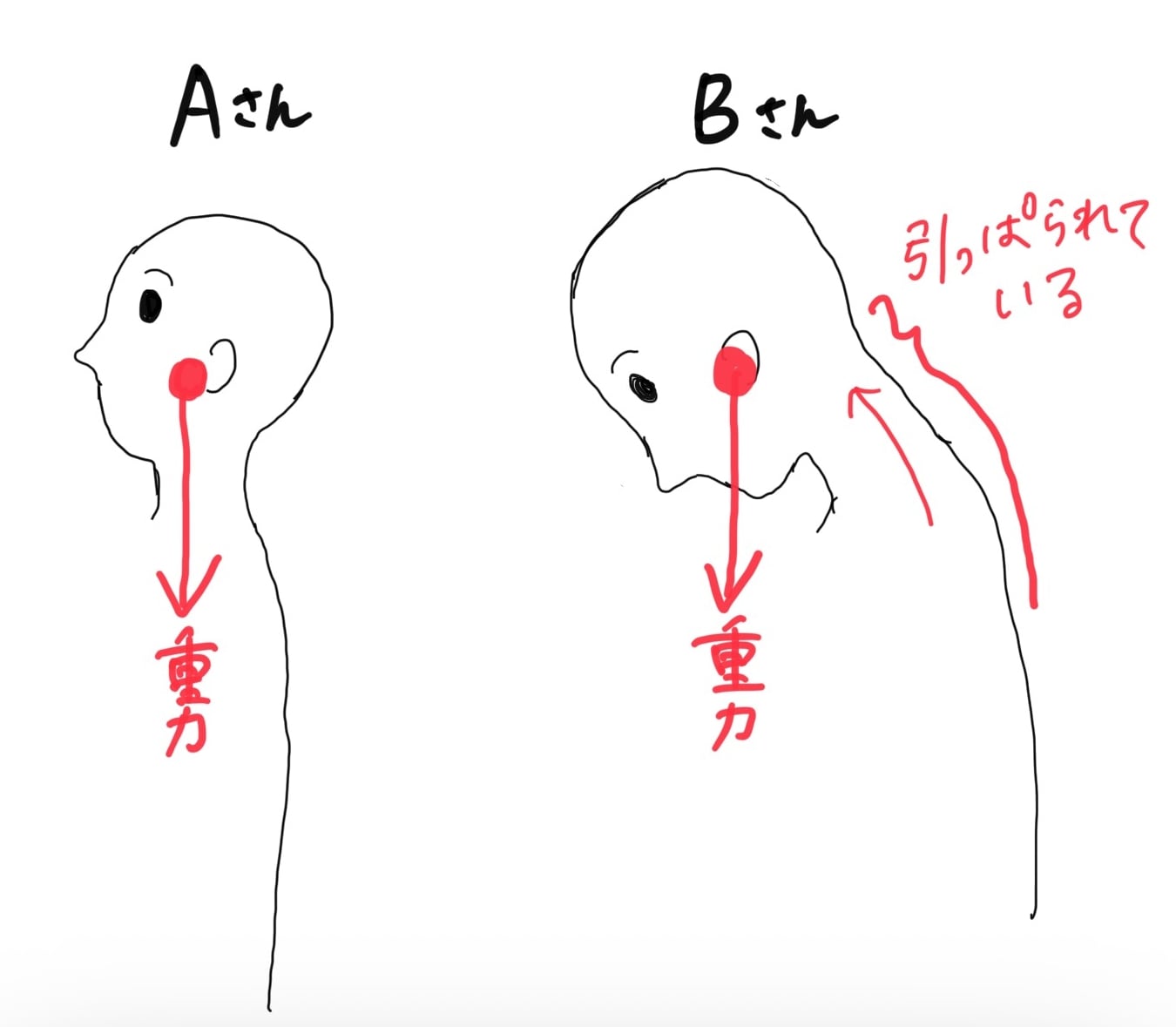 Bさんの姿勢は前に傾いているので、