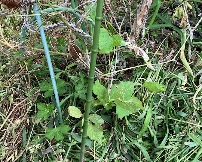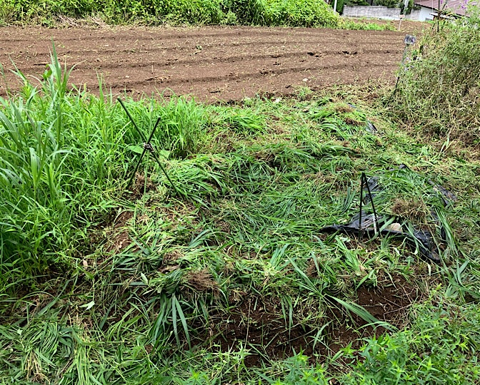 草マルチにしてまた根付くと厄介なので、くるっとして縛って敷いておきました。