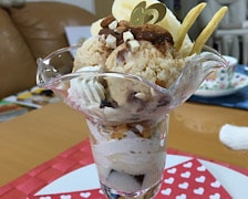 雑穀甘酒クリームやアイス、雑穀粉を使ったビスケット、コーヒーゼリー(寒天)、ポンセンクリーム、タカキビ甘酒(まるでチョコレート!!)と、バナナを乗せて、めっちゃ豪勢な盛り付けに!!