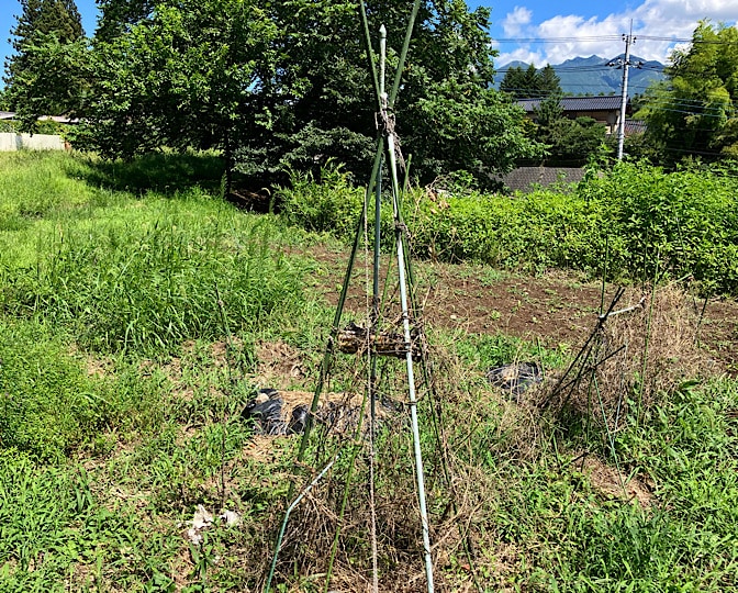 サツマイモを植える予定だったところと、ヘチマがいなくなってたところを、天地返ししておきました。