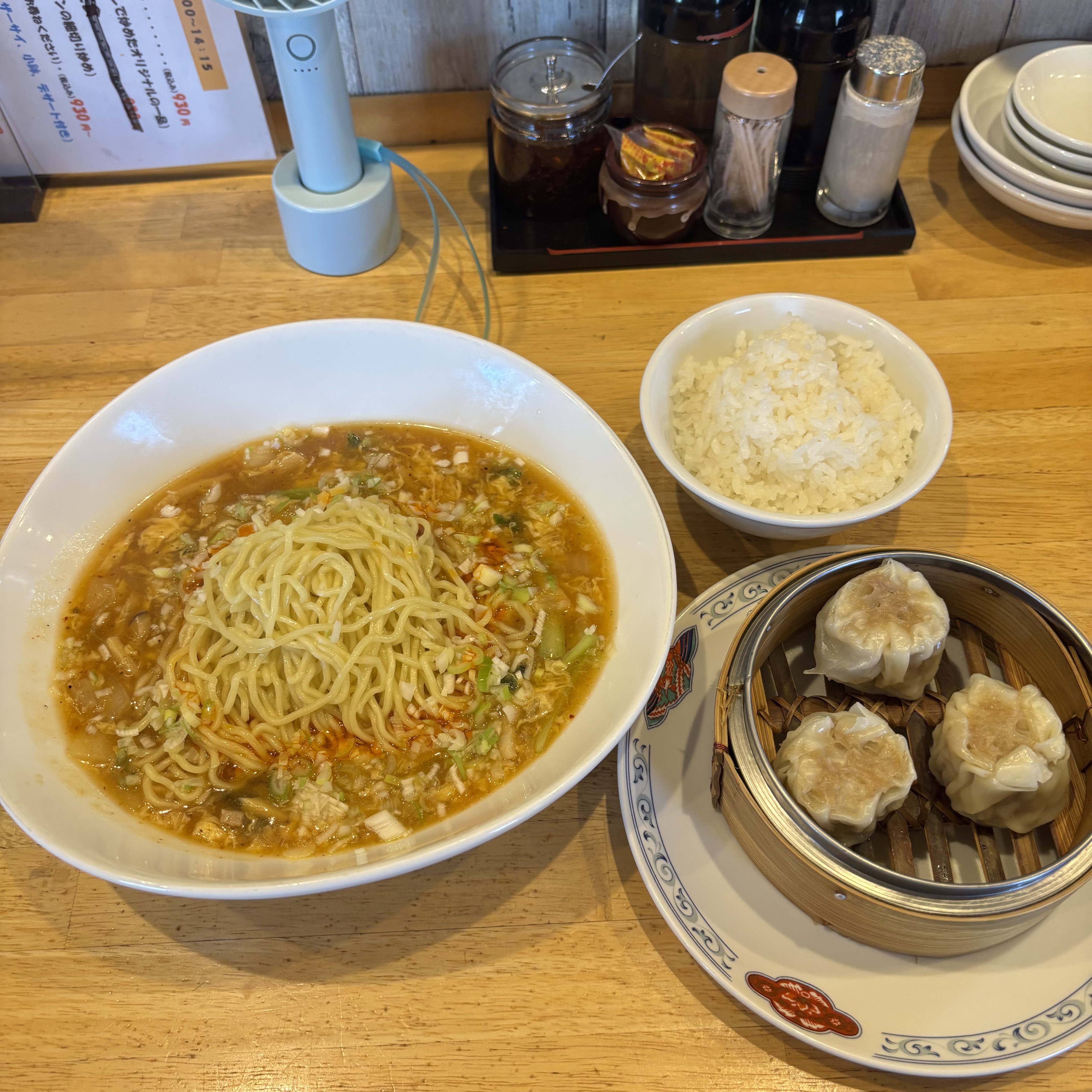 サンマーメン、スーラータン、ニラ玉定食で悩みましたが、酸っぱいのがすきなのでスーラータンにしました🍜大食いの気分だったのでシュウマイセットにしました!お店てきに餃子よりシュウマイ推しのようです🤔美味でした👌全メニューコンプリートしたいです🙆🏻♂️