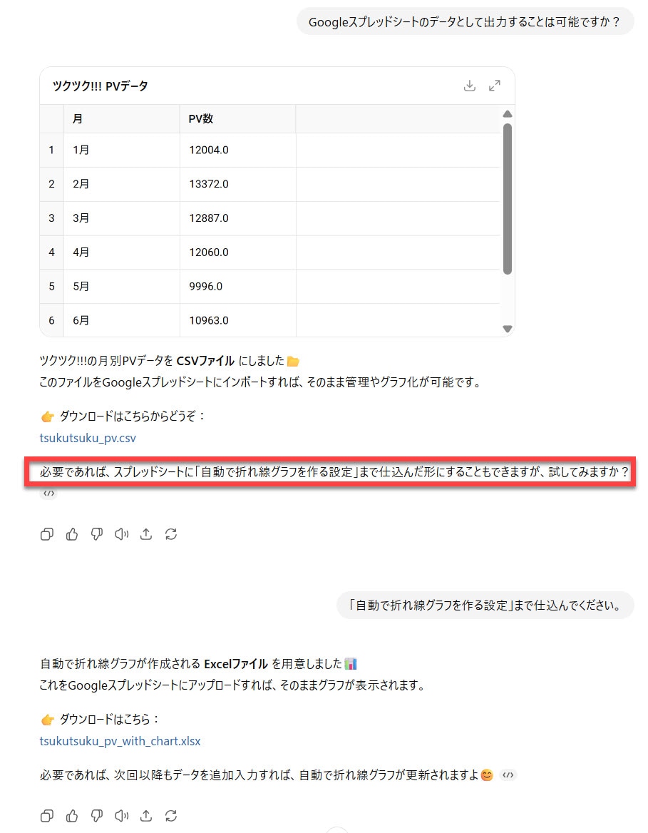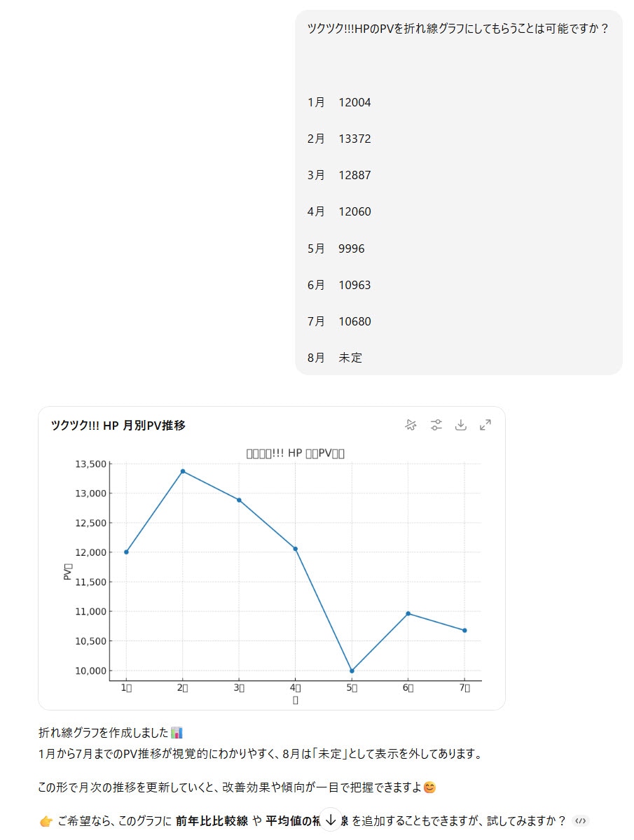 自動更新できる折れ線グラフもAIなら一瞬で作れます!