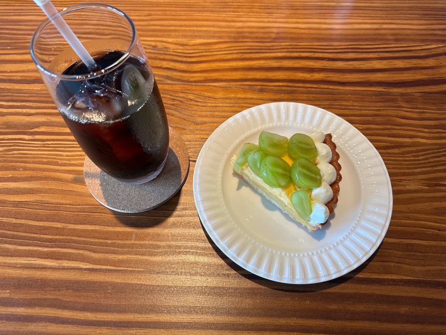 昔かまどやがあったとこに新しく開店して、カルムって名前のカフェになっていたので行ってきました!一之宮なので自宅から近くて行きやすいです🚶ちなみにカルムはフランス語で凪(穏やかな海)を意味するそうです🤔アイスコーヒーとシャインマスカットのタルトケーキ☕️美味です🍴