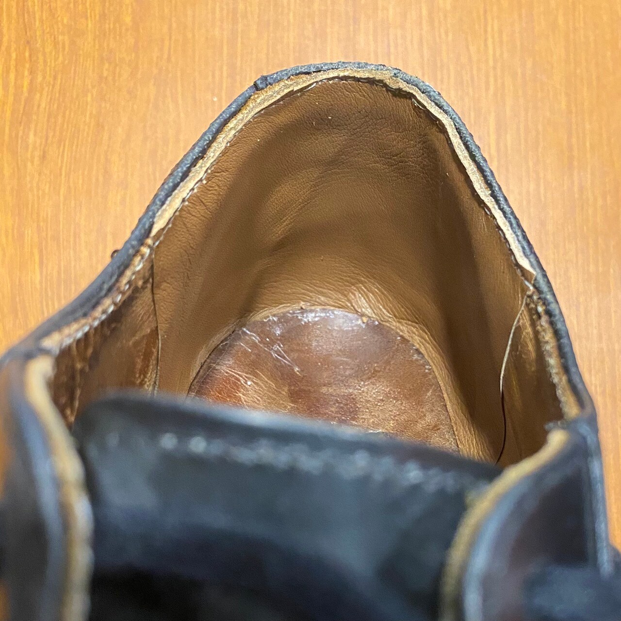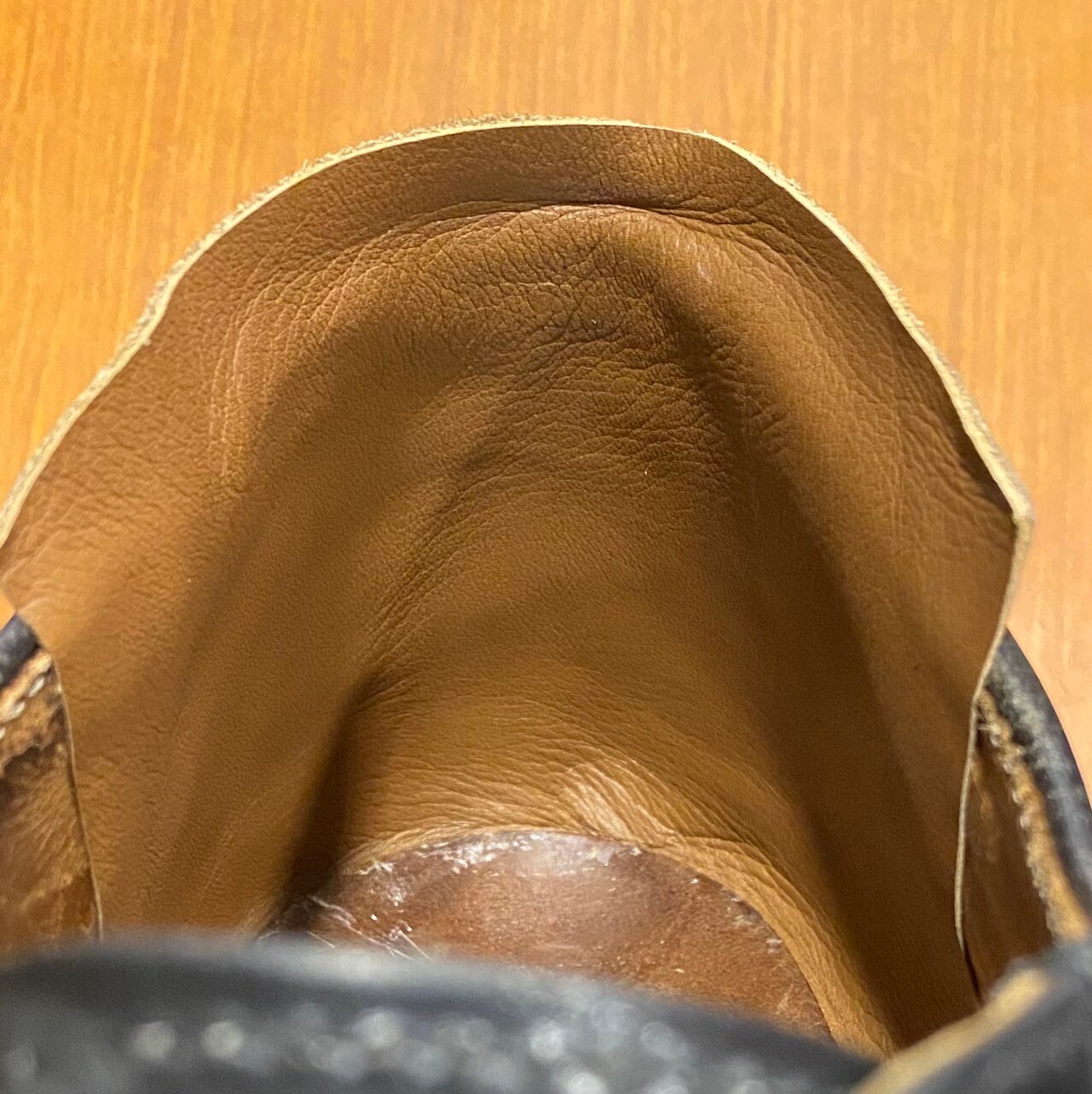 擦れやすい部分になるのでしっかり紐を締めて靴を履いていても穴があいたりしちゃいます。この部分に上から革を当てて補強してあげます。