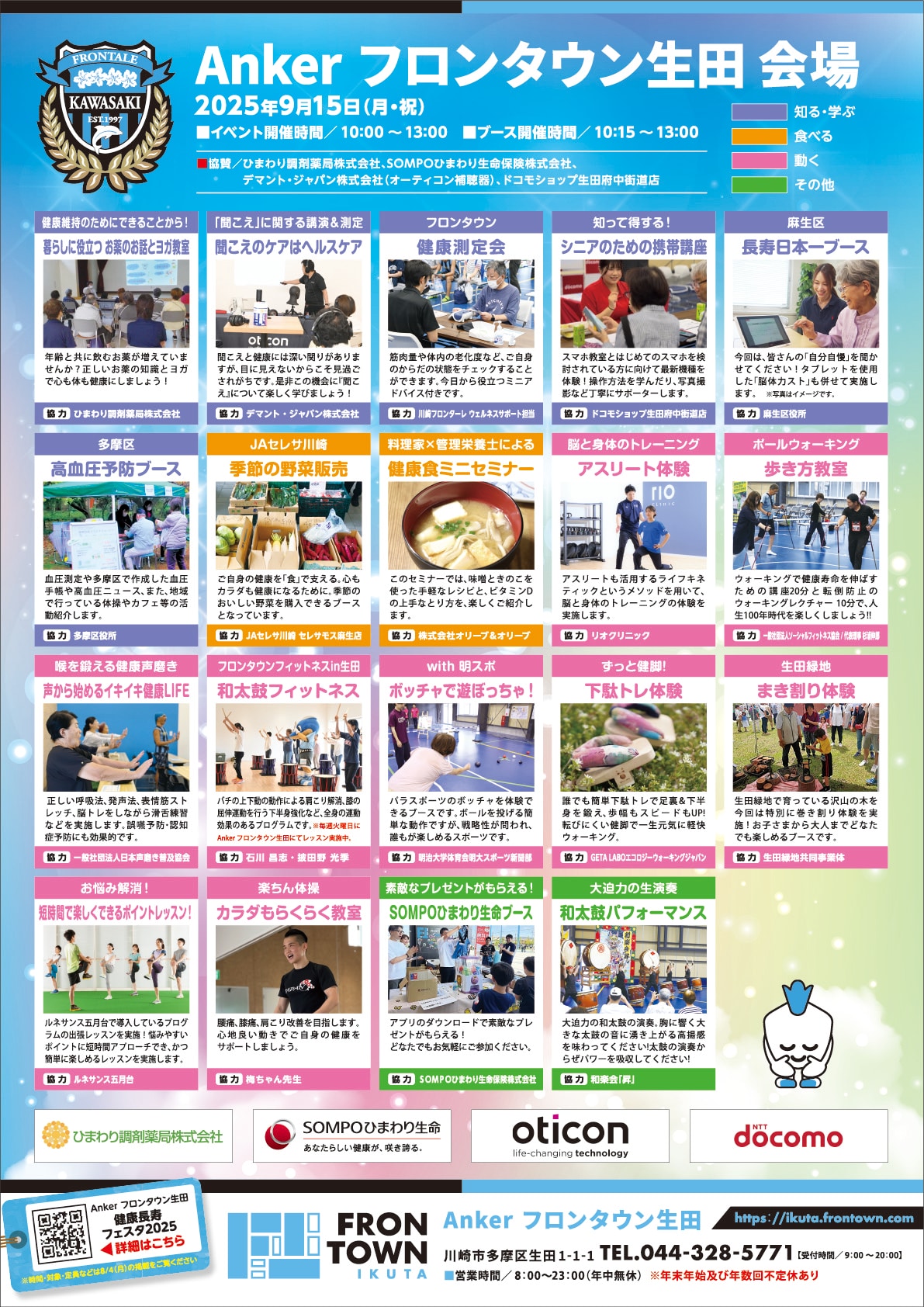 2025年9月15日にAnker フロンタウン生田にて開催される『Anker フロンタウン生田 健康長寿フェスタ2025 supported by ひまわり調剤薬局株式会社』に参加することが決定いたしました!