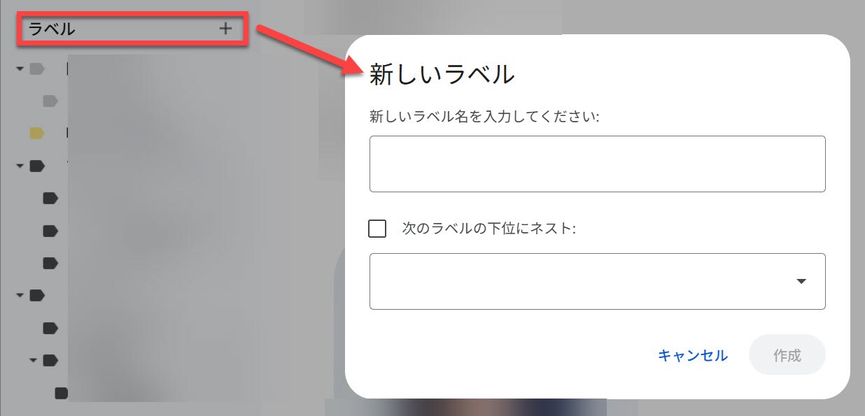 ラベルの横の+で新しいラベルを作ります。
