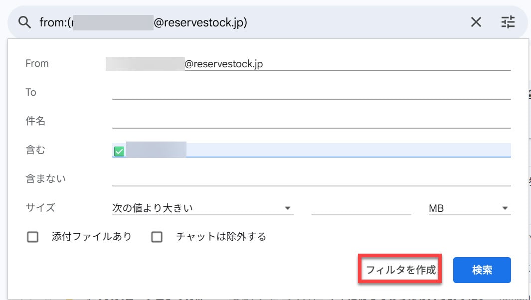 ただし、フィルタ作成時にチェックを入れれば