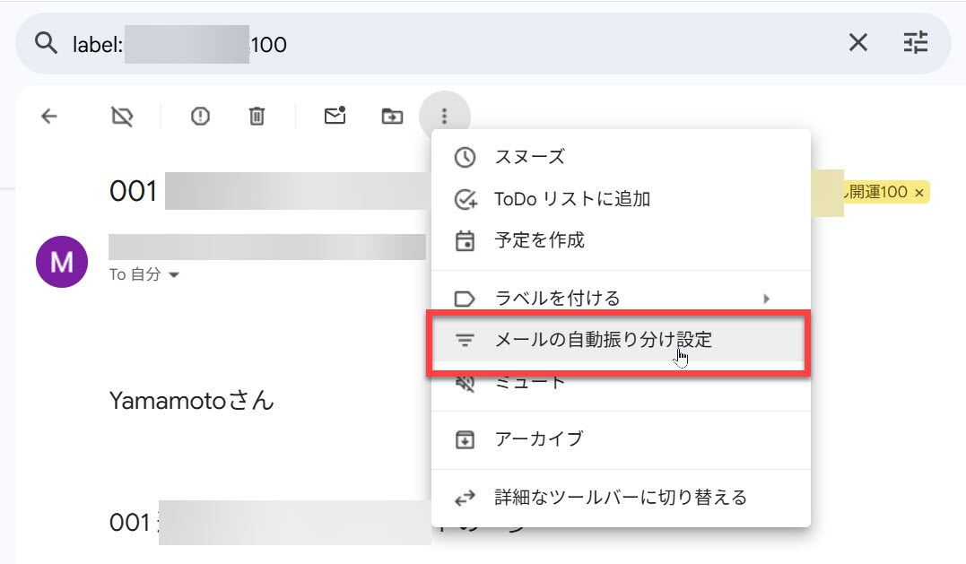すでにあるメールには「手動ラベル付け」も使える。