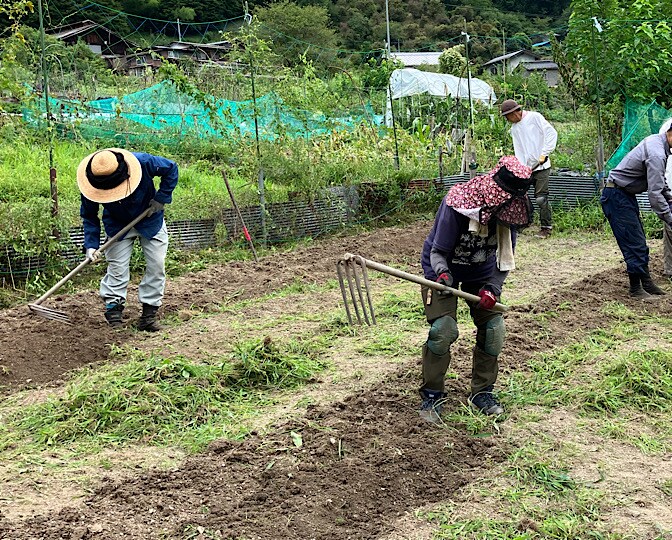この時の鍬の使い方も、前回教わったけど、またお浚い〜。