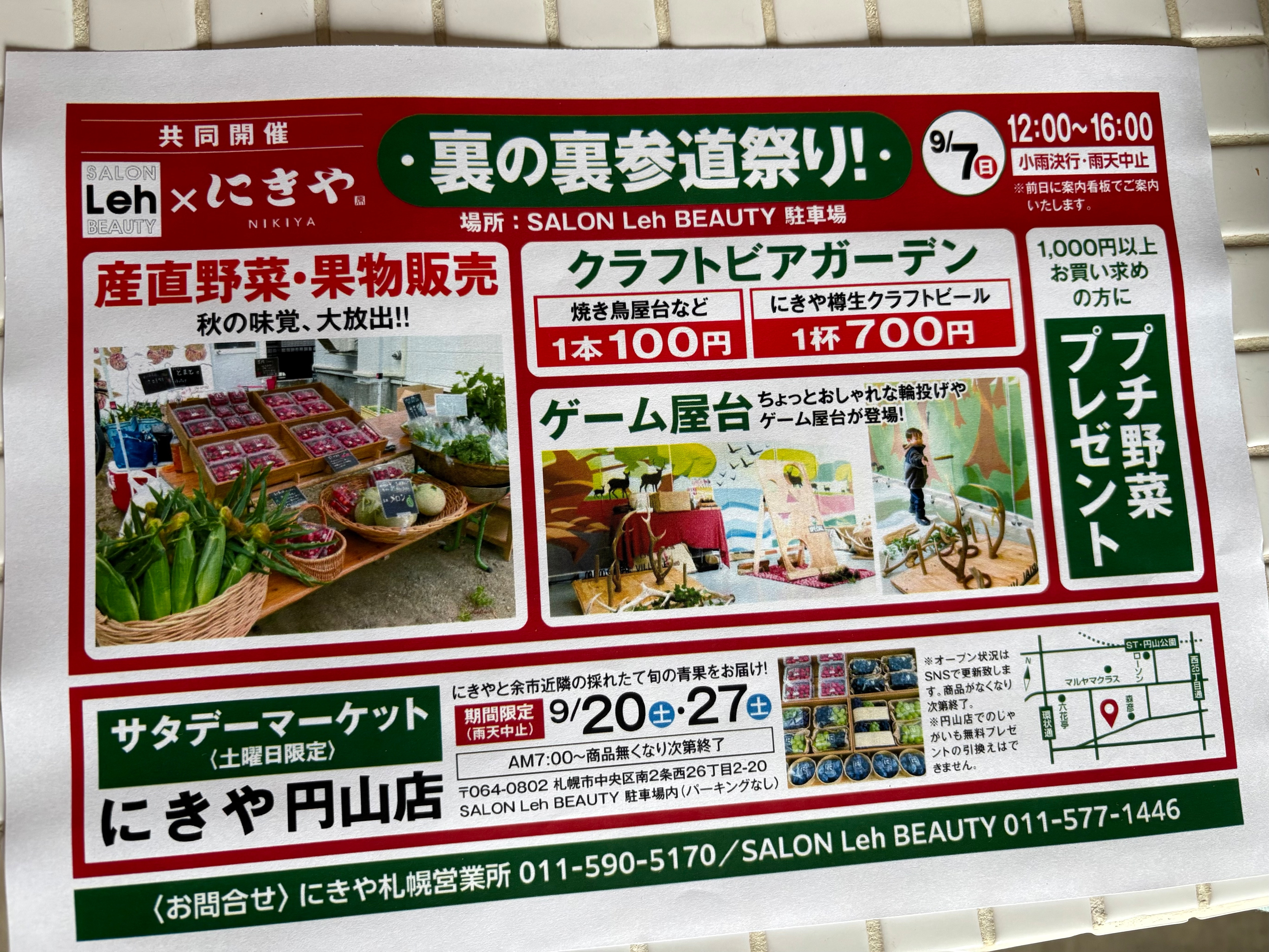 クスクスオーブン+ホッパーズの道を挟んで向かいにある美容室Lehさんでも9月7日は面白い企画があります。
