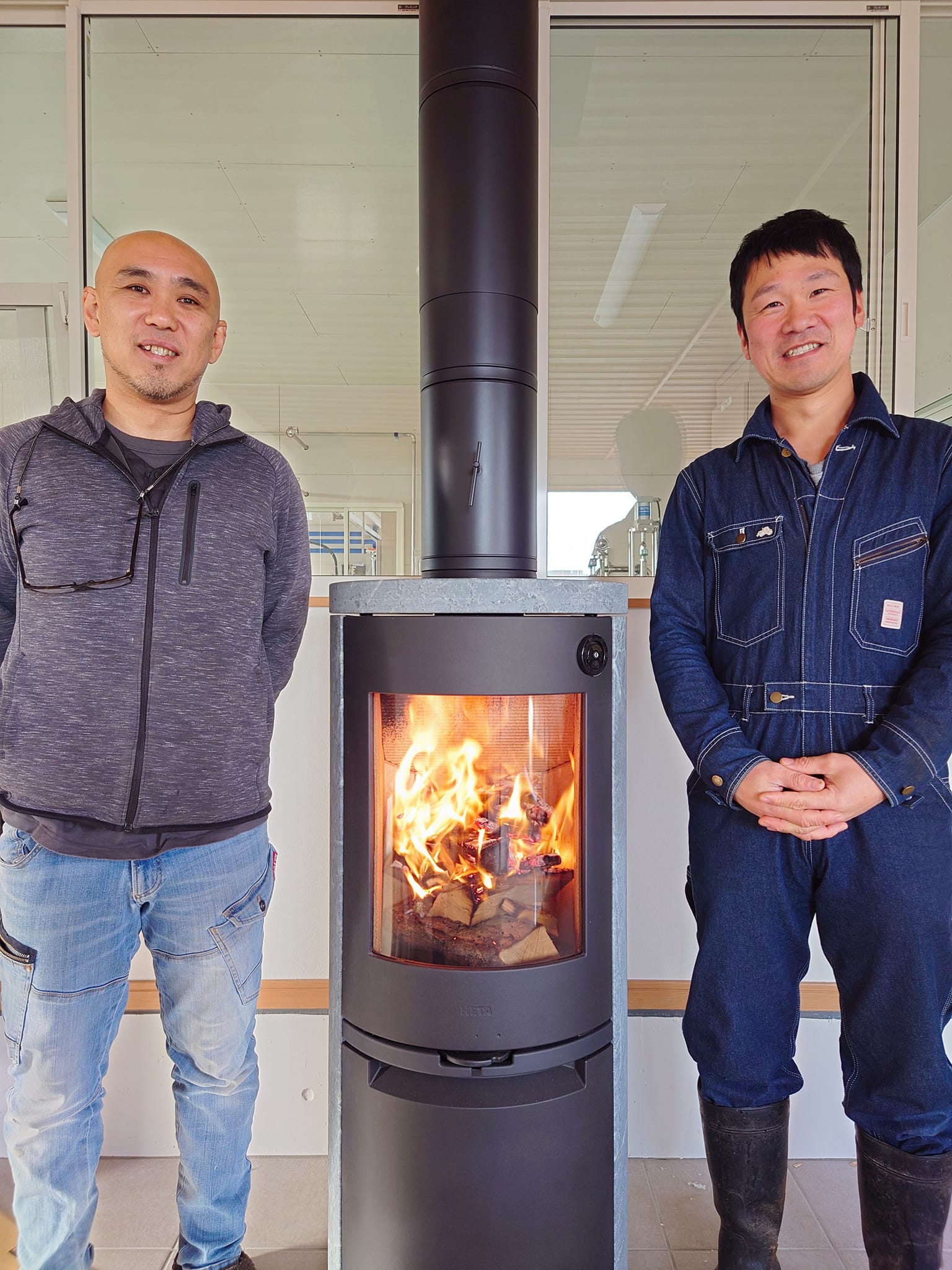 さんにお世話になり、新牛舎の休憩室に薪ストーブが設置されました。