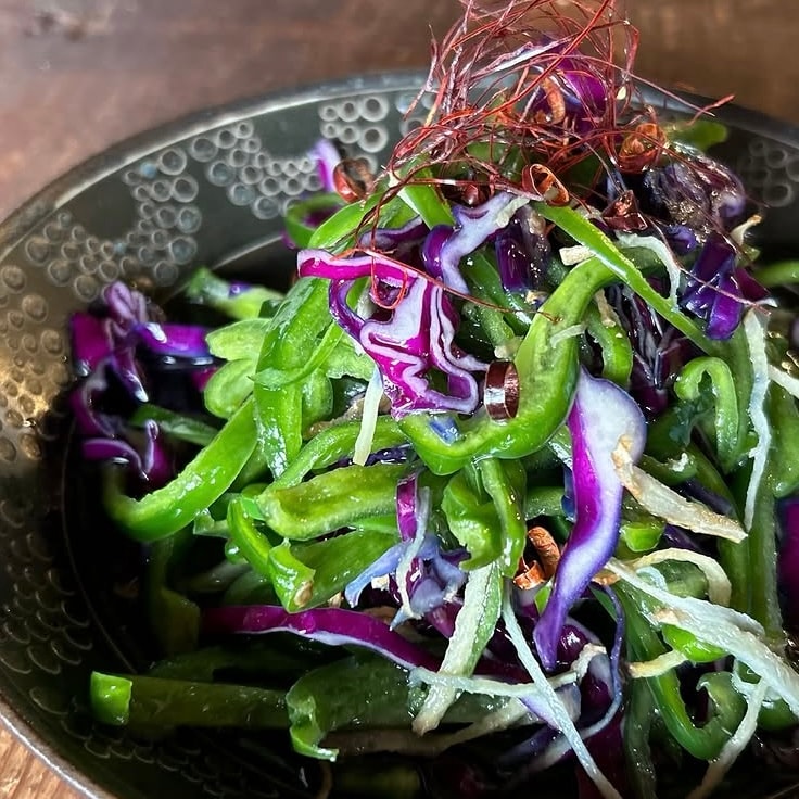 ◆香味油で食べるピーマンと紫キャベツ