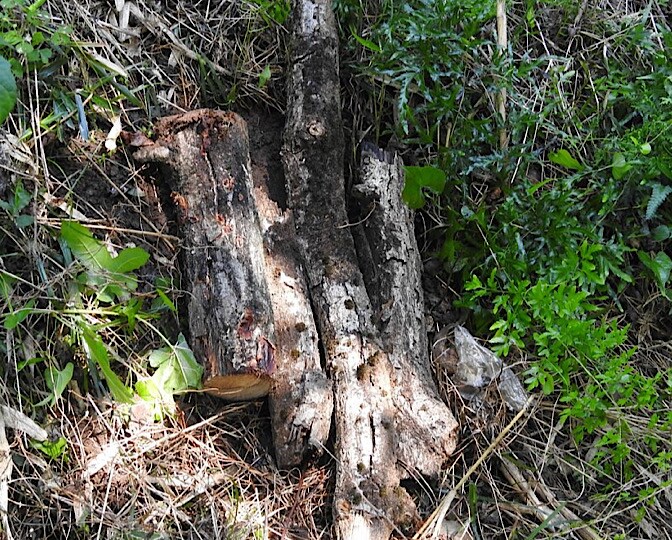 チェーンソーで玉切りにしたのを、道の脇へ、よいしょ! と…。