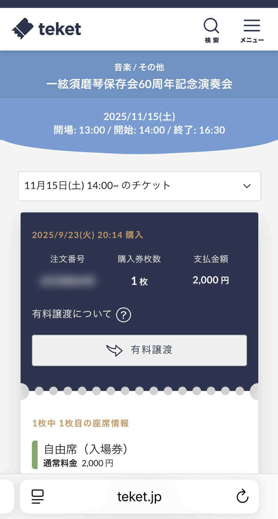 ※電子チケット(『テケト 一絃琴』で検索を♪)