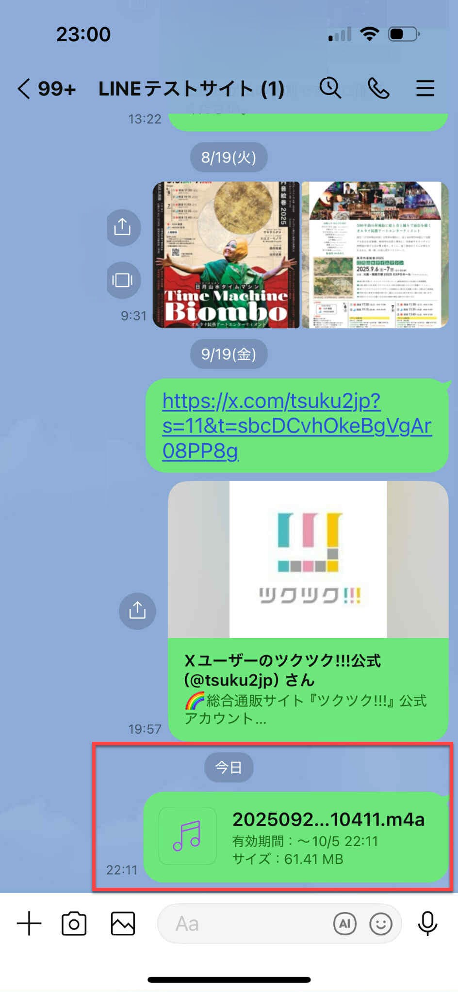 共有を押して自分のテスト用に作っているLINEへ