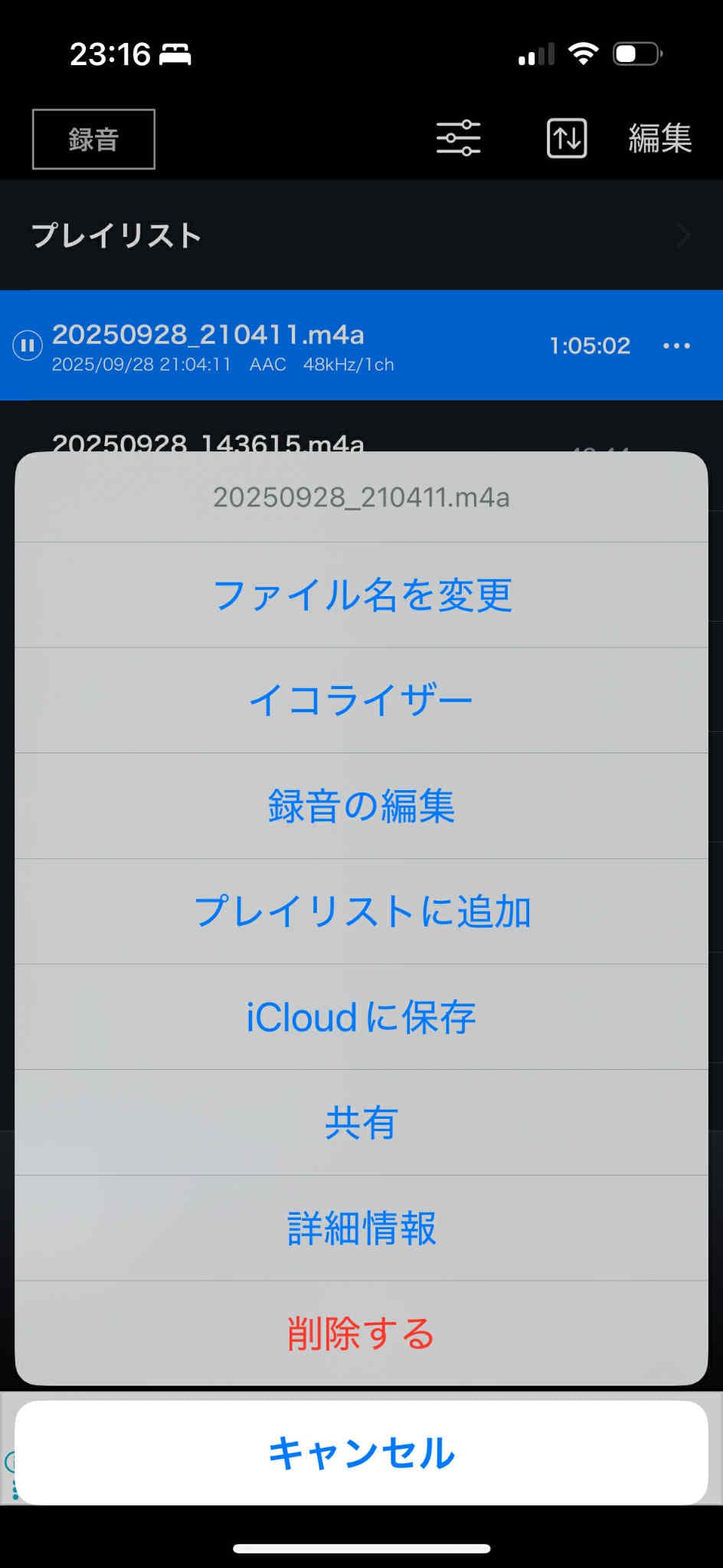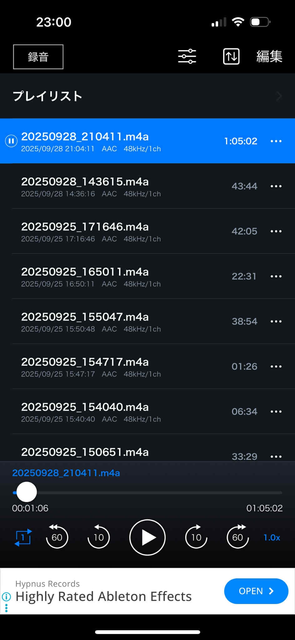録音データはこんな風に表示されます。