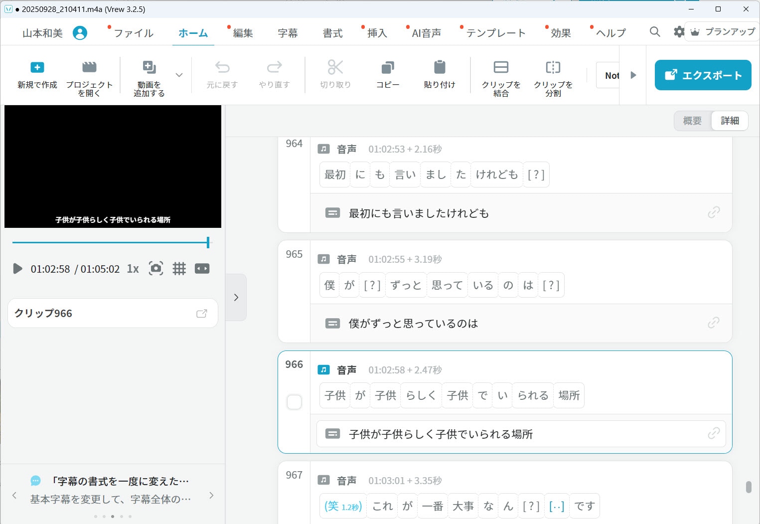 Vrewに読み込んで文字起こし