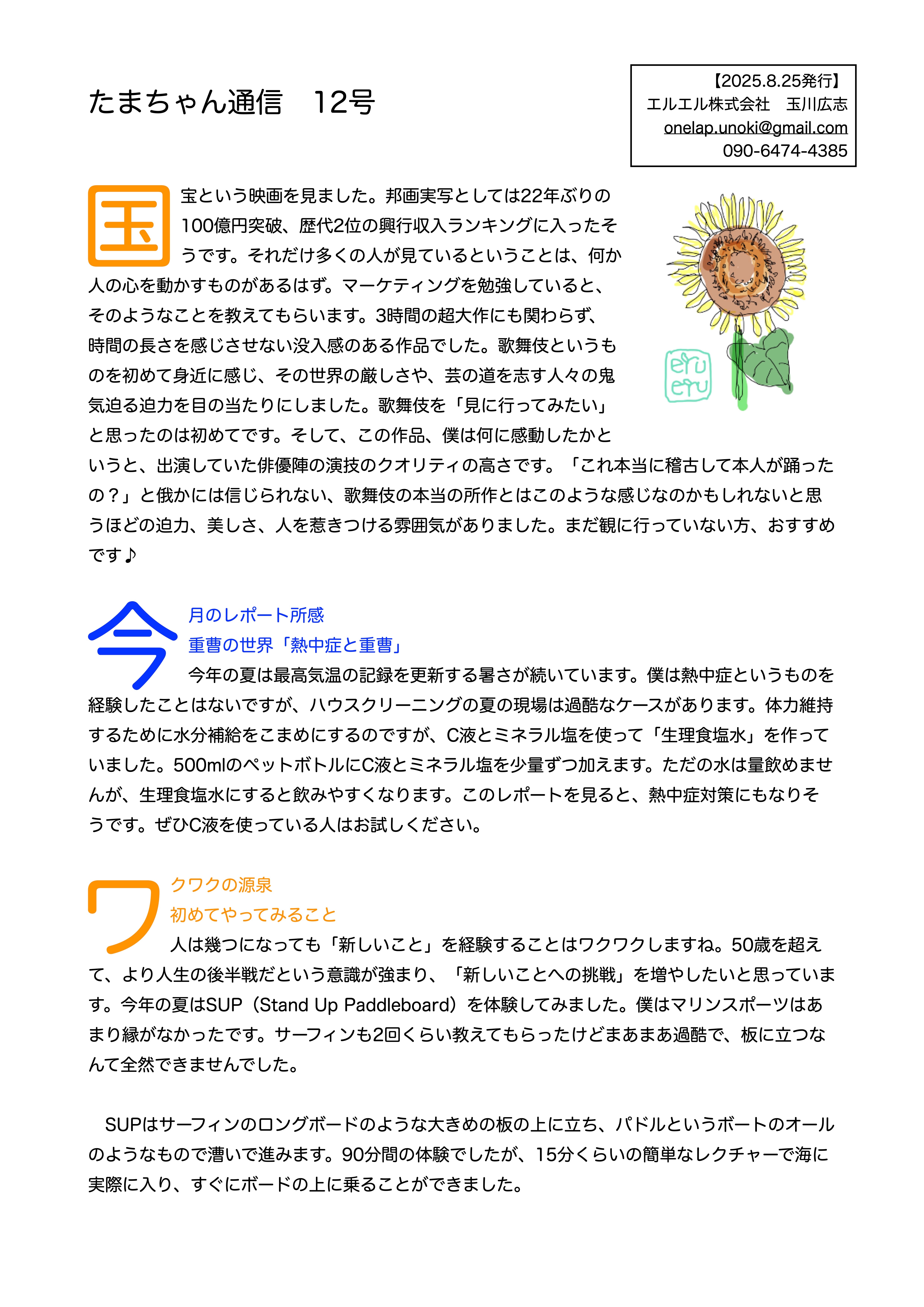 たまちゃん通信12号(2025年8月25日発行)