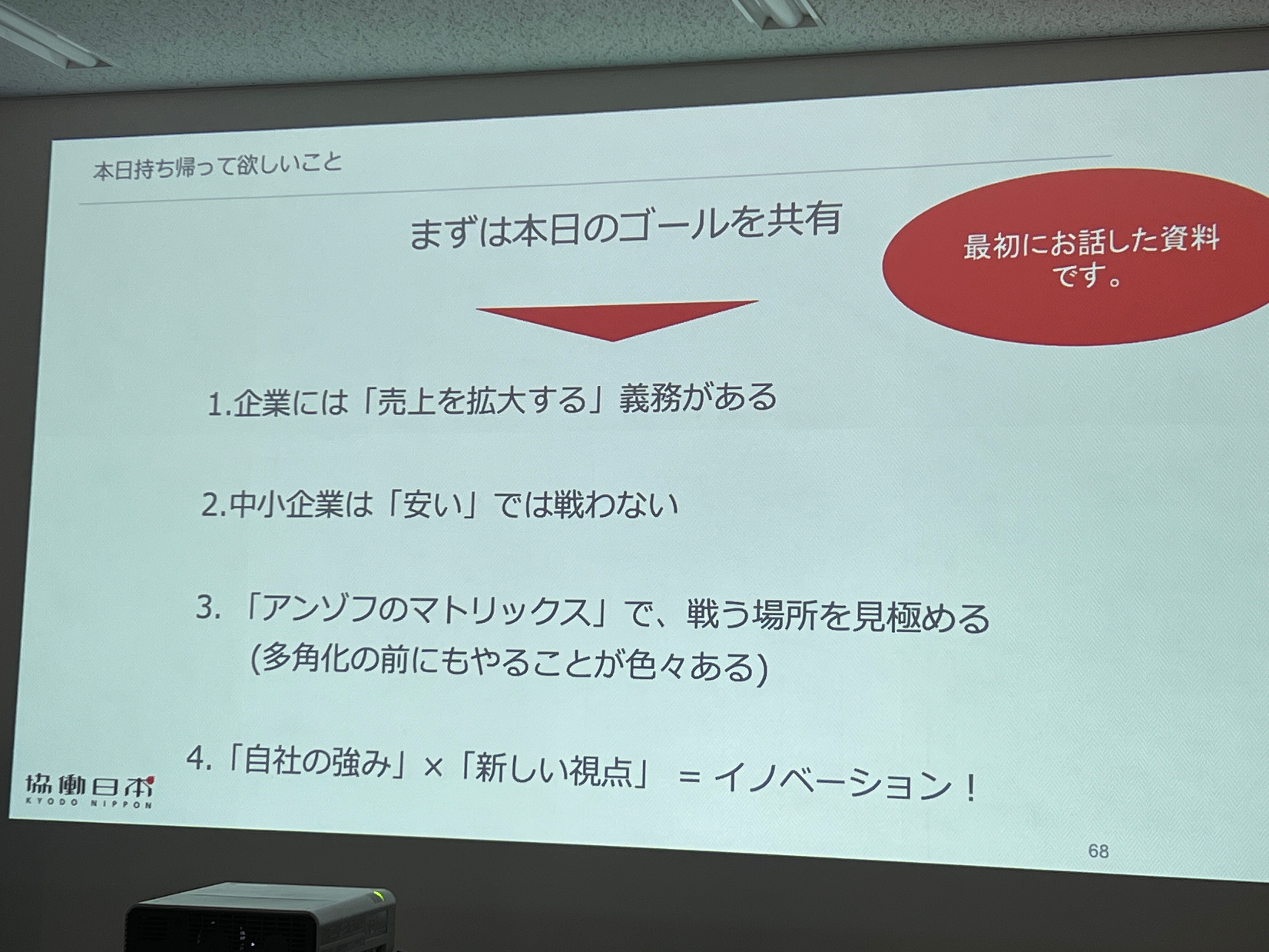 セミナーでは「アンゾフのマトリクス」というフレームワークが紹介されました。
