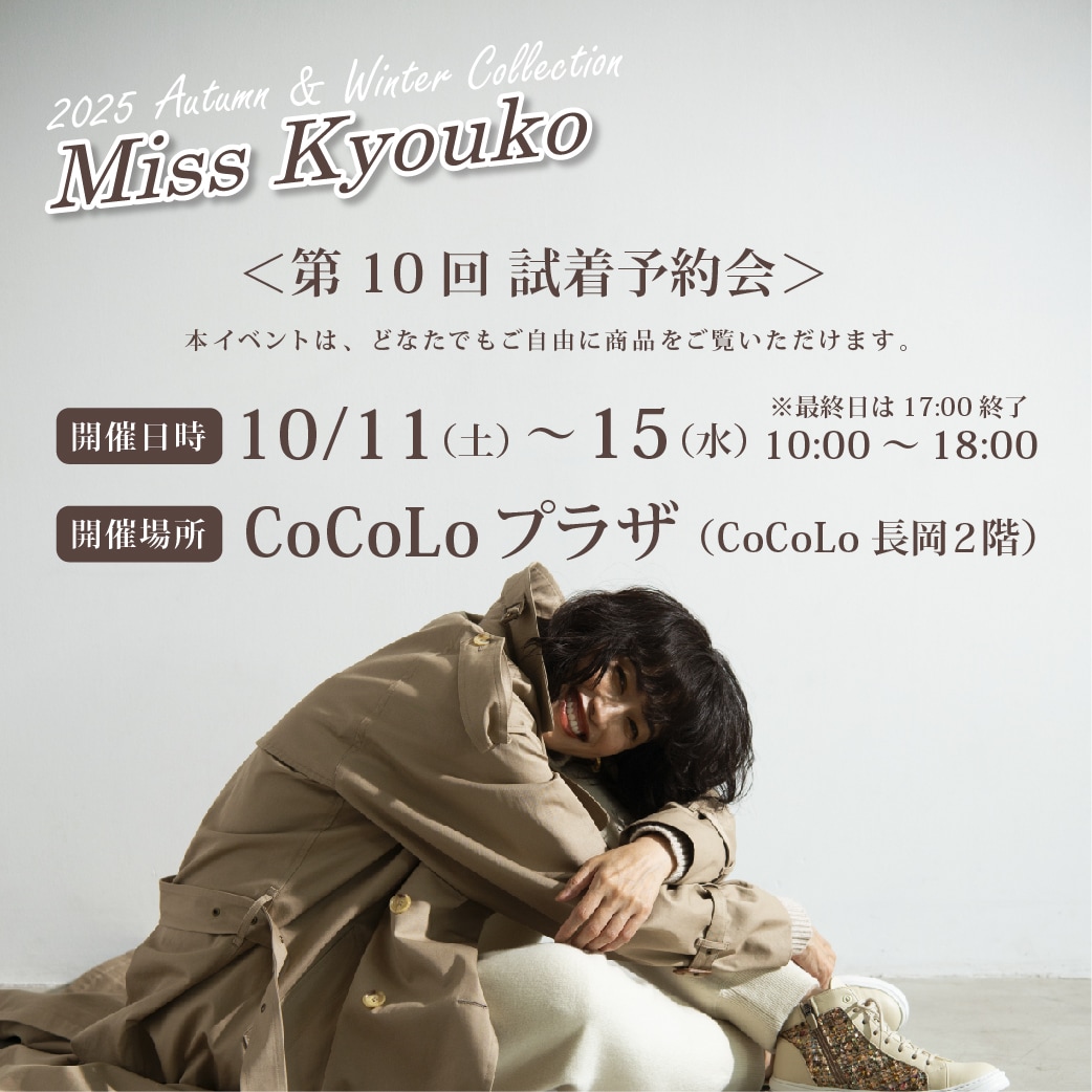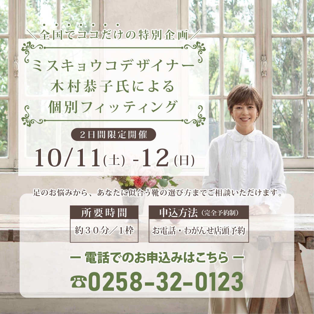 人気のミスキョウコシューズの試着予約会、今回で10回目の開催となります!