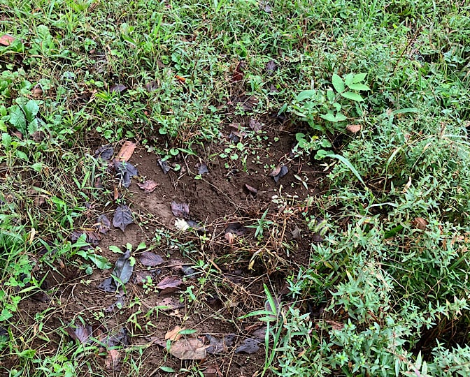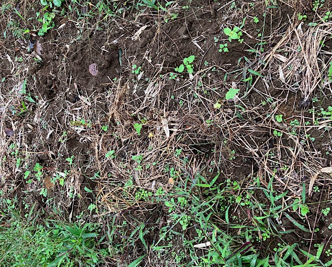 ミソハギの前に、土が剥き出しになってるとこがあるんだけど、ここは動物がなんかした感じかなーー??