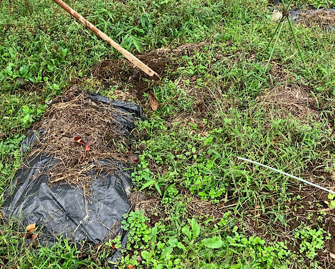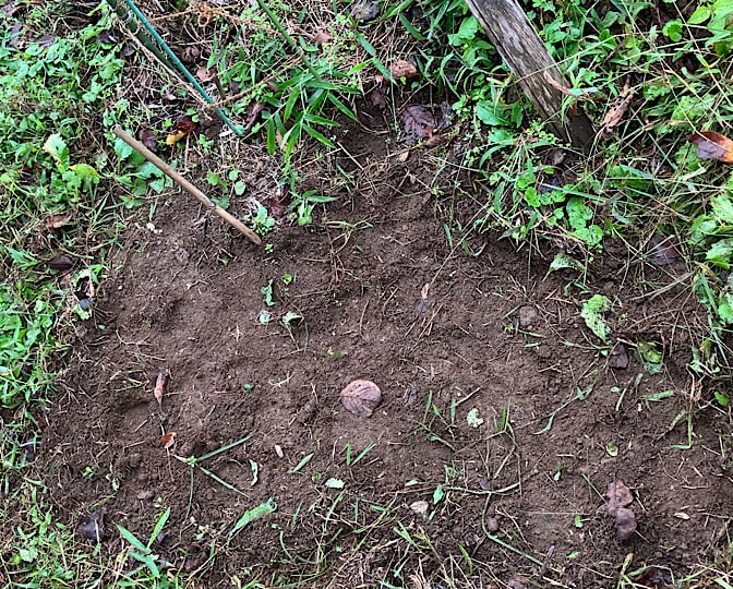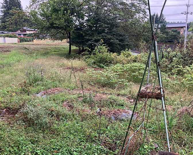 長年親しんだ(???)キーホルダーガーデン(キーホールガーデンにしようとして失敗したやつ)を、普通の縦長畑に変えることにしました。