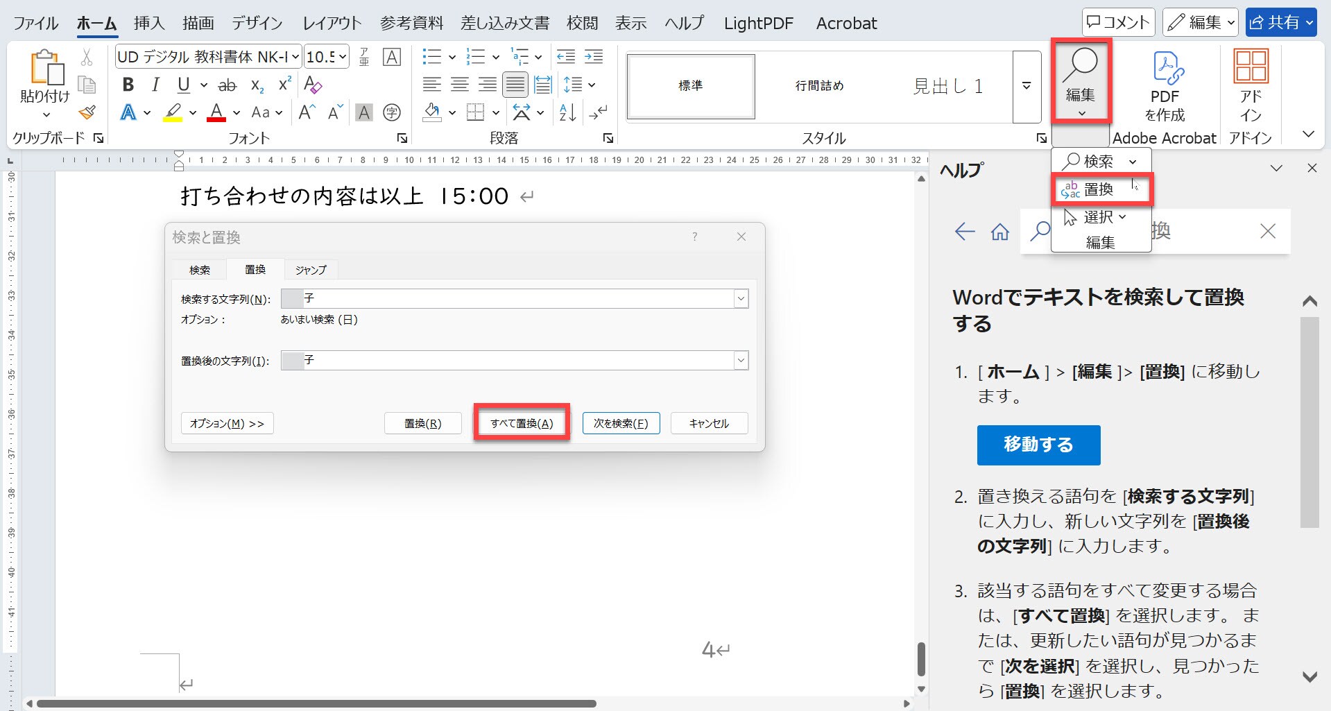 「検索と置換」