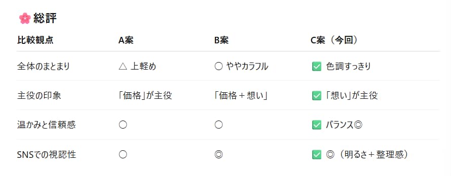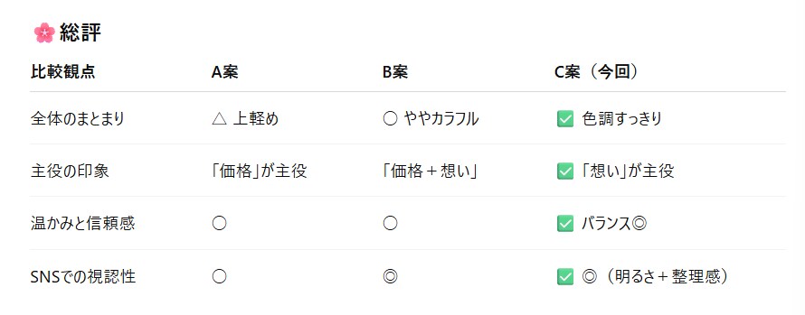 ChatGPTが作ってくれた比較表