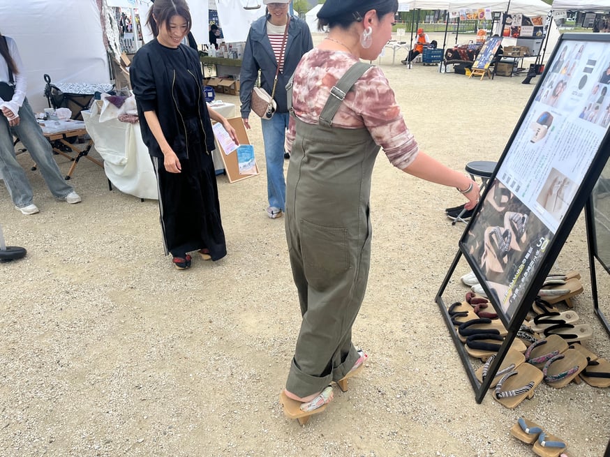 会場にお越しいただきました多くのお客様にブースにお立ち寄りいただき、一本歯(バランス)下駄をご体験いただきました。