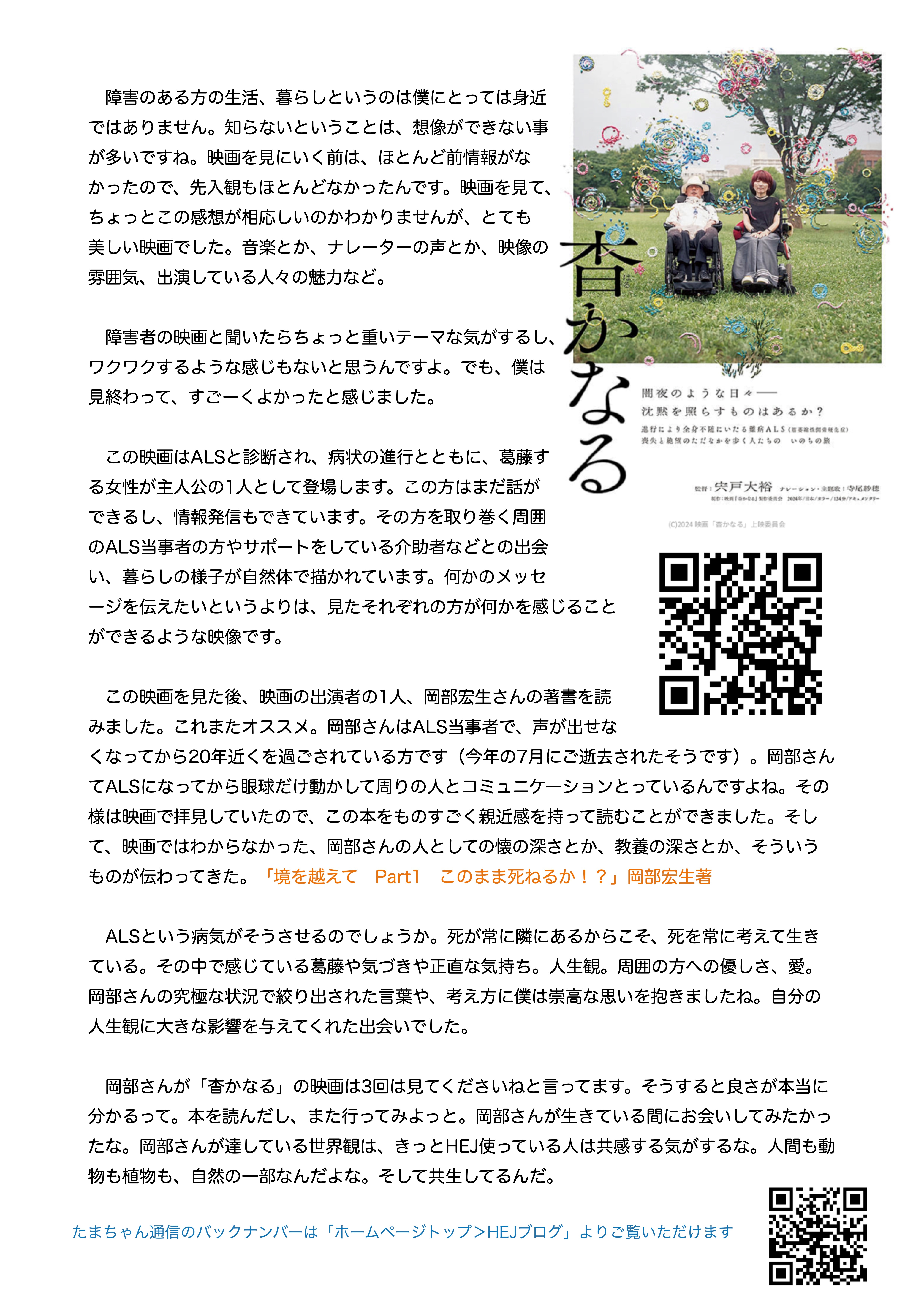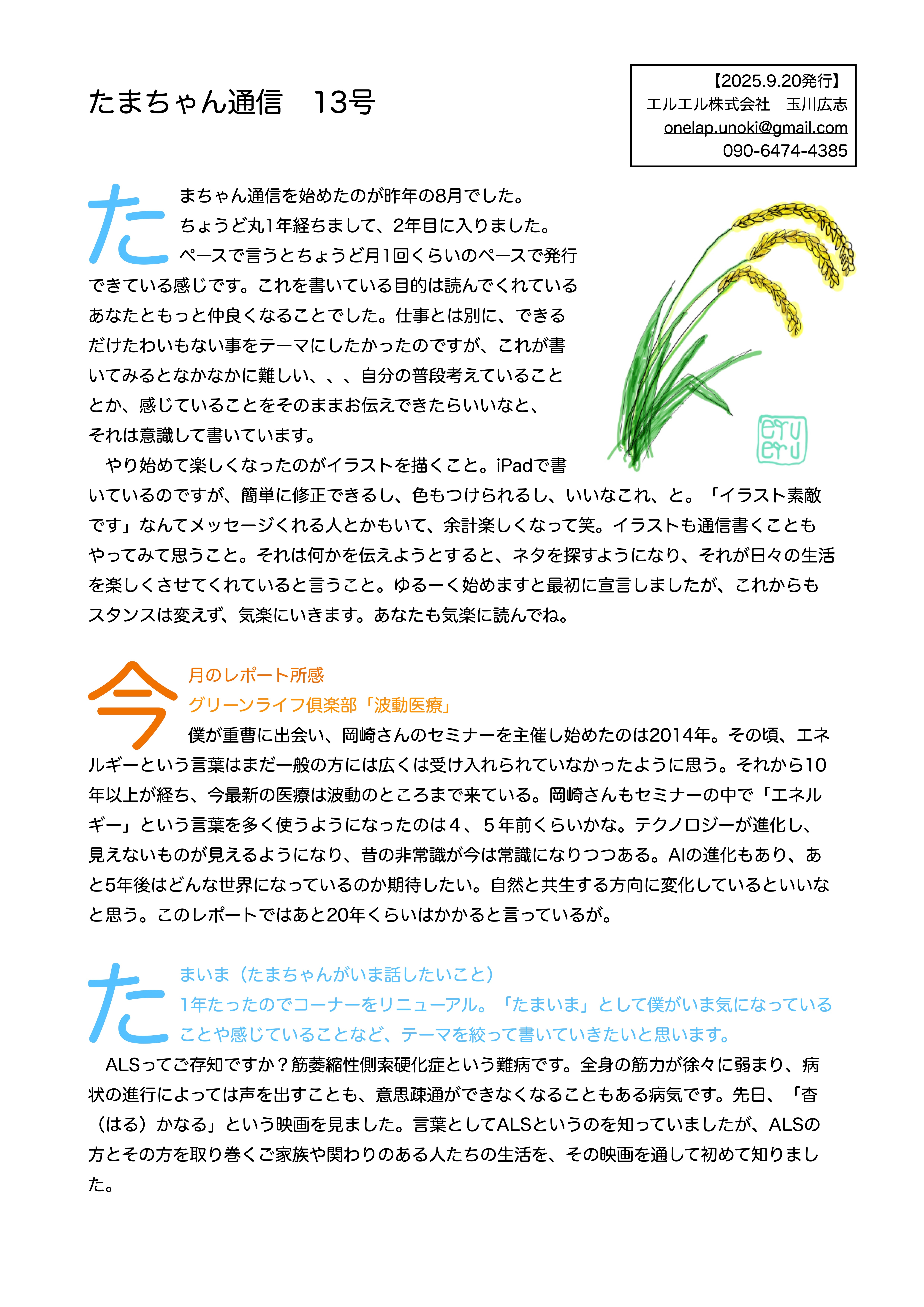 たまちゃん通信13号(2025年9月20日発行)