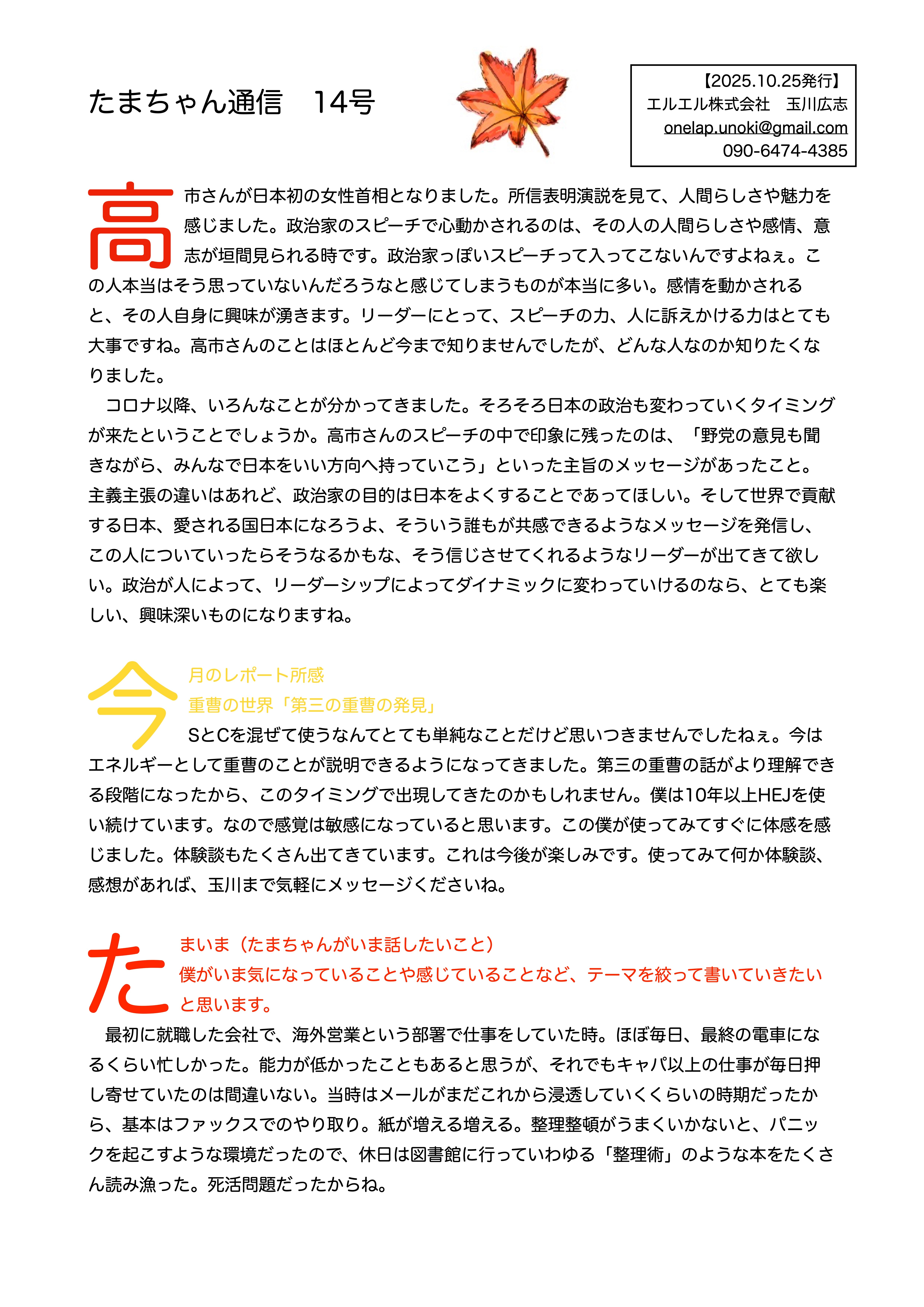 たまちゃん通信14号(2025年10月25日発行)