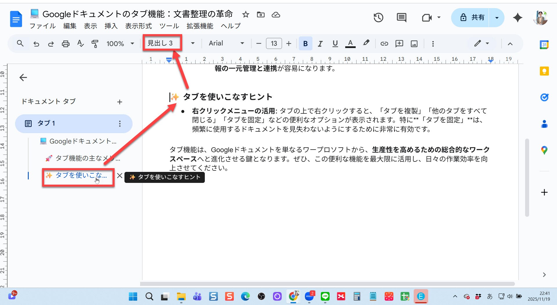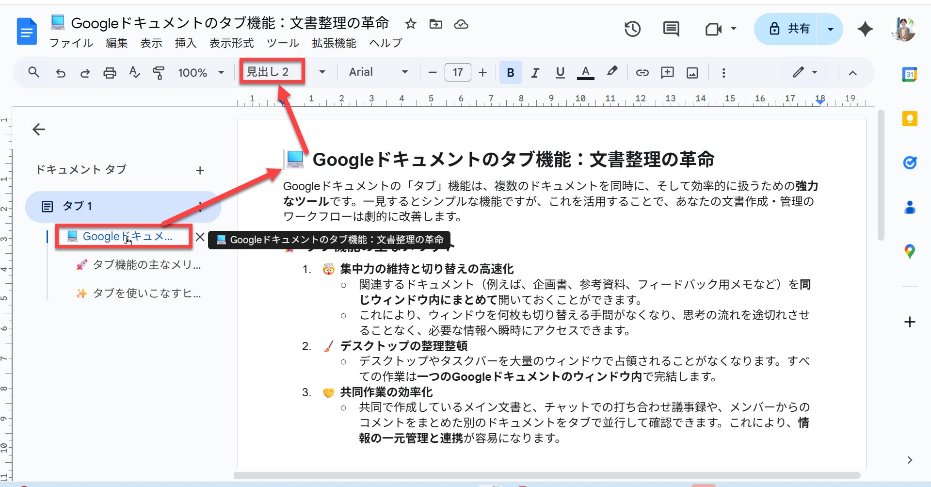 💻 Googleドキュメントのタブ機能:文書整理の革命
