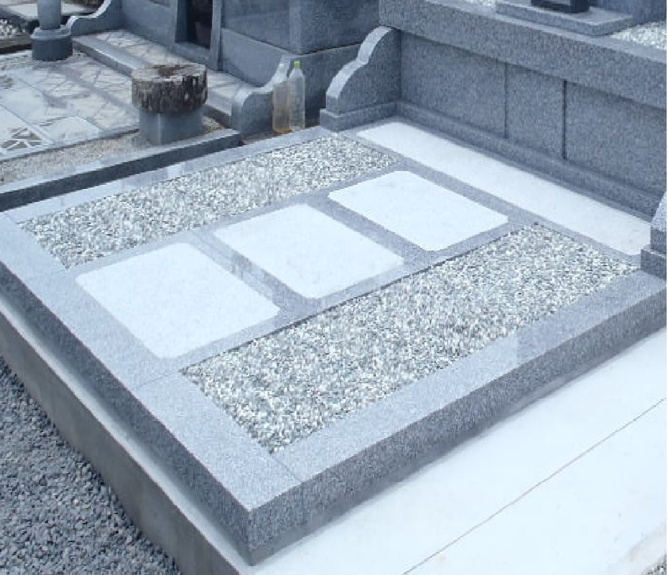 拝石(おがみいし・はいせき)とは、墓地の中に敷いてある四角い石材で、皆さんはこの石の上を歩いたり、お墓の前で手を合わせるために乗っている石材です。