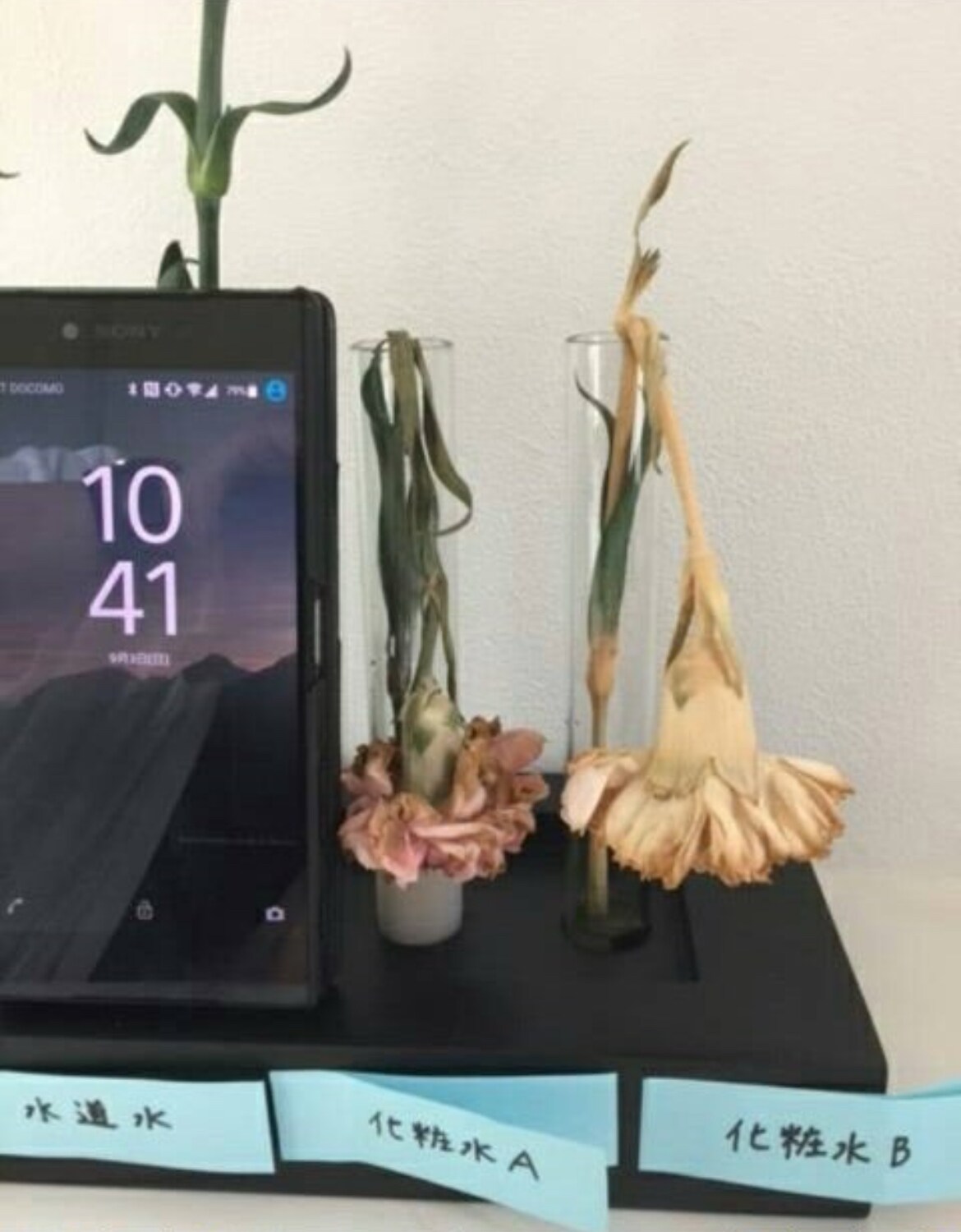 化粧水Bだけに現れた現象で、他の花には一切ありませんでした。
