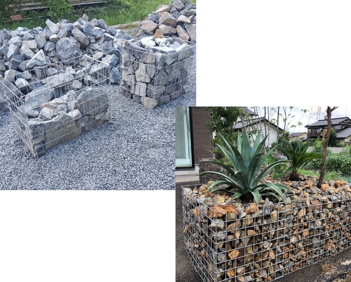 そのひとつが、石をワイヤーカゴに積み込むエクステリア “ガビオン”。