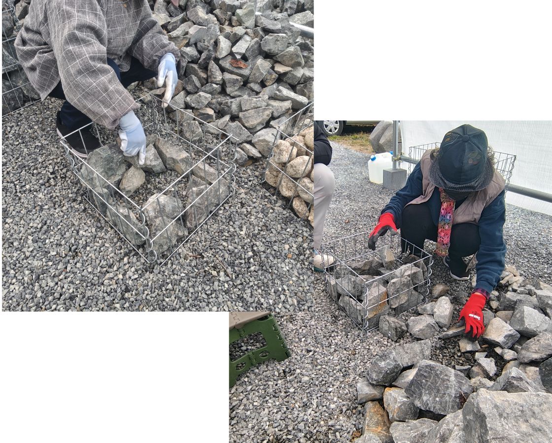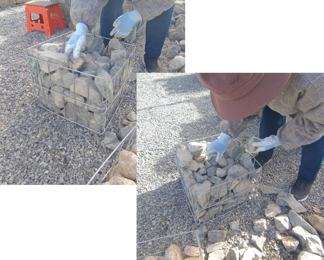 約1時間後、ひとつとして同じではないガビオンが完成。