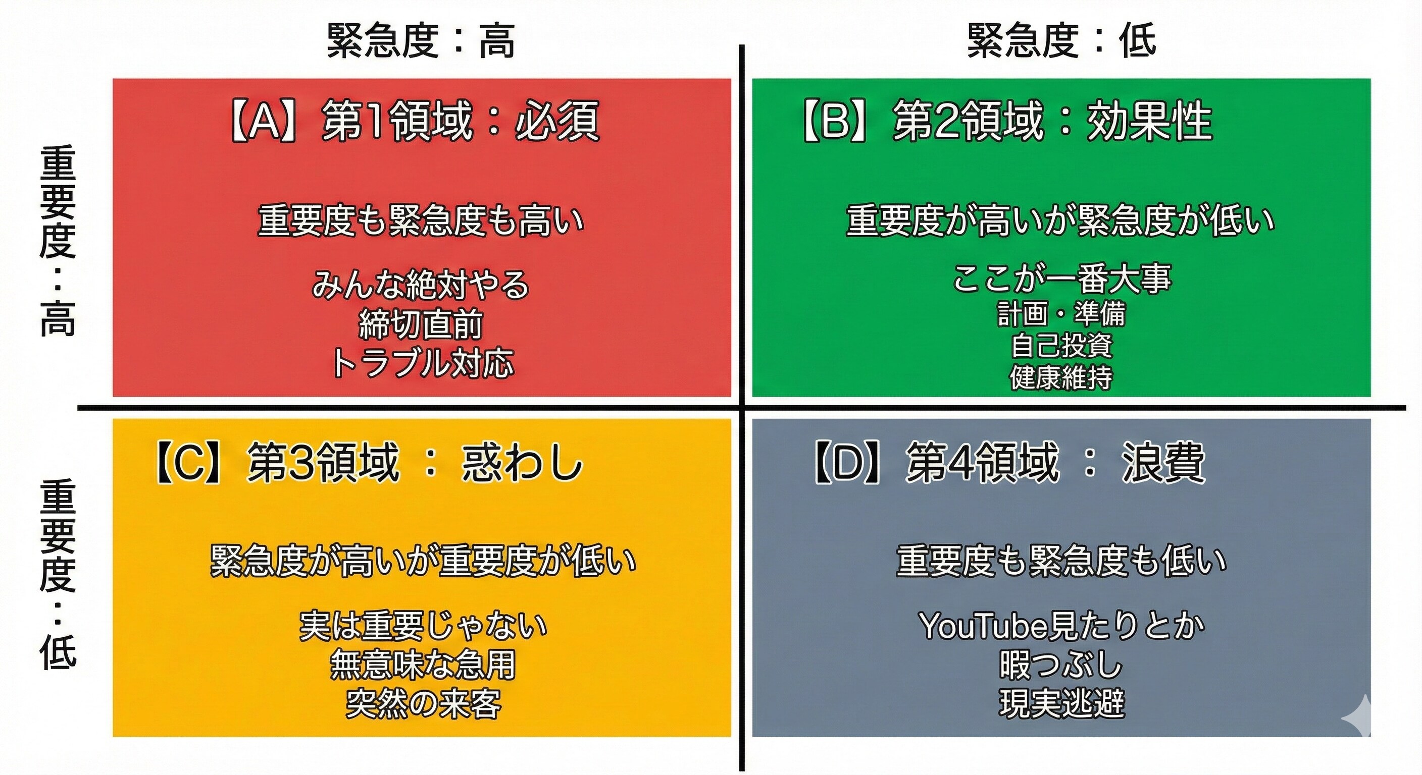 そして「重要だけど緊急じゃないこと」を後回しにすること。