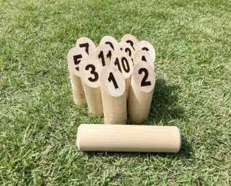 木製のピン(スキットル)を「モルック」と呼ばれる棒で倒し、ちょうど50点を目指していく競技です。
