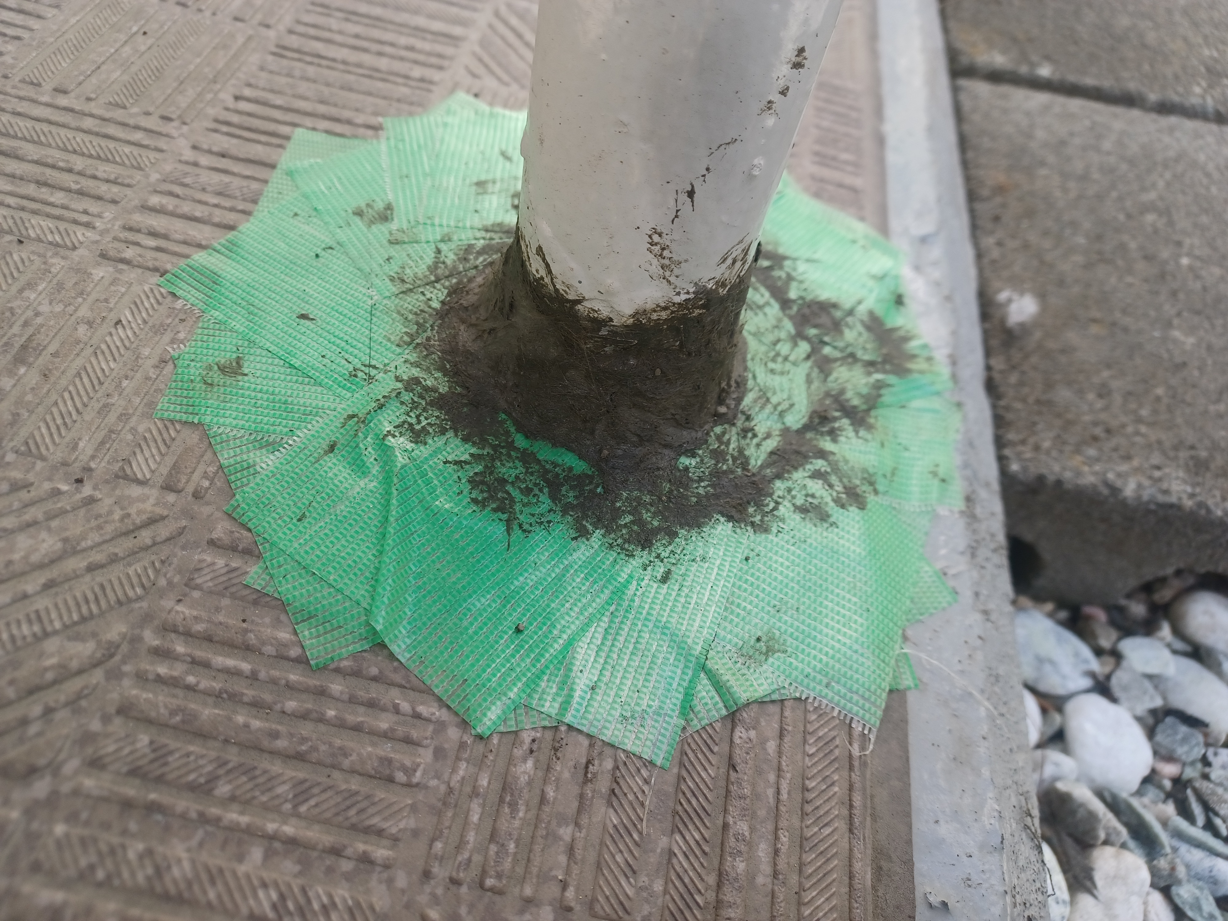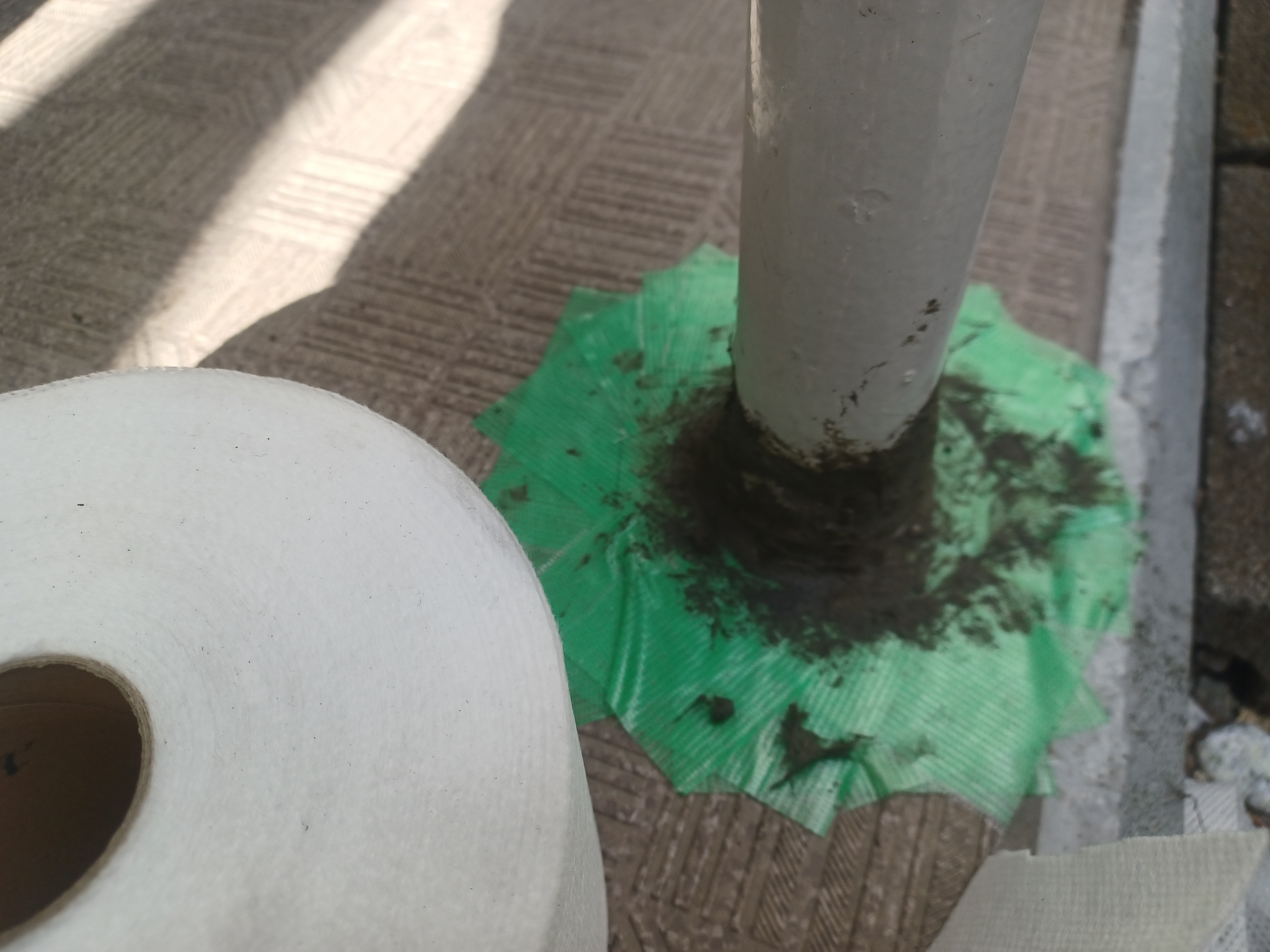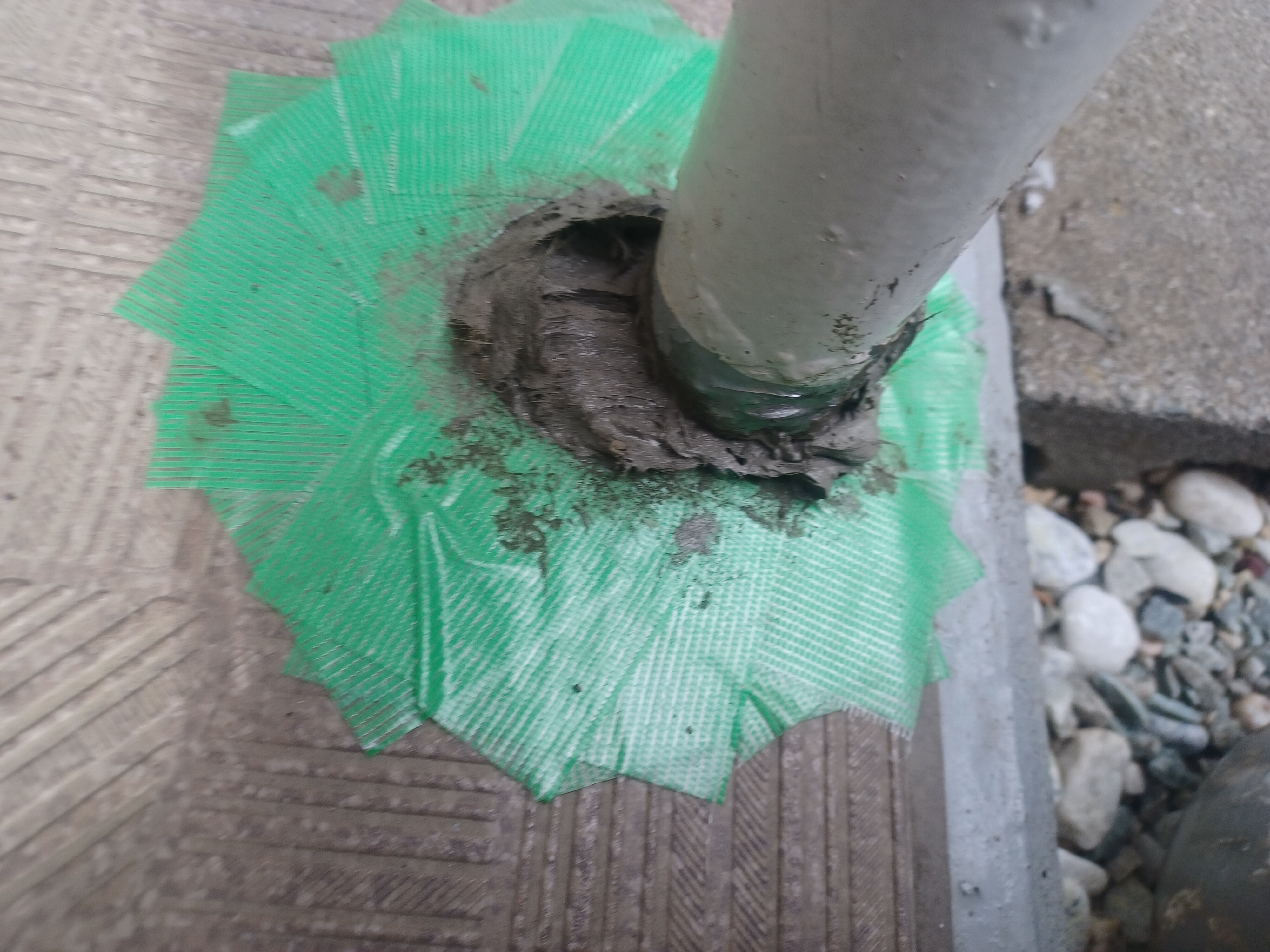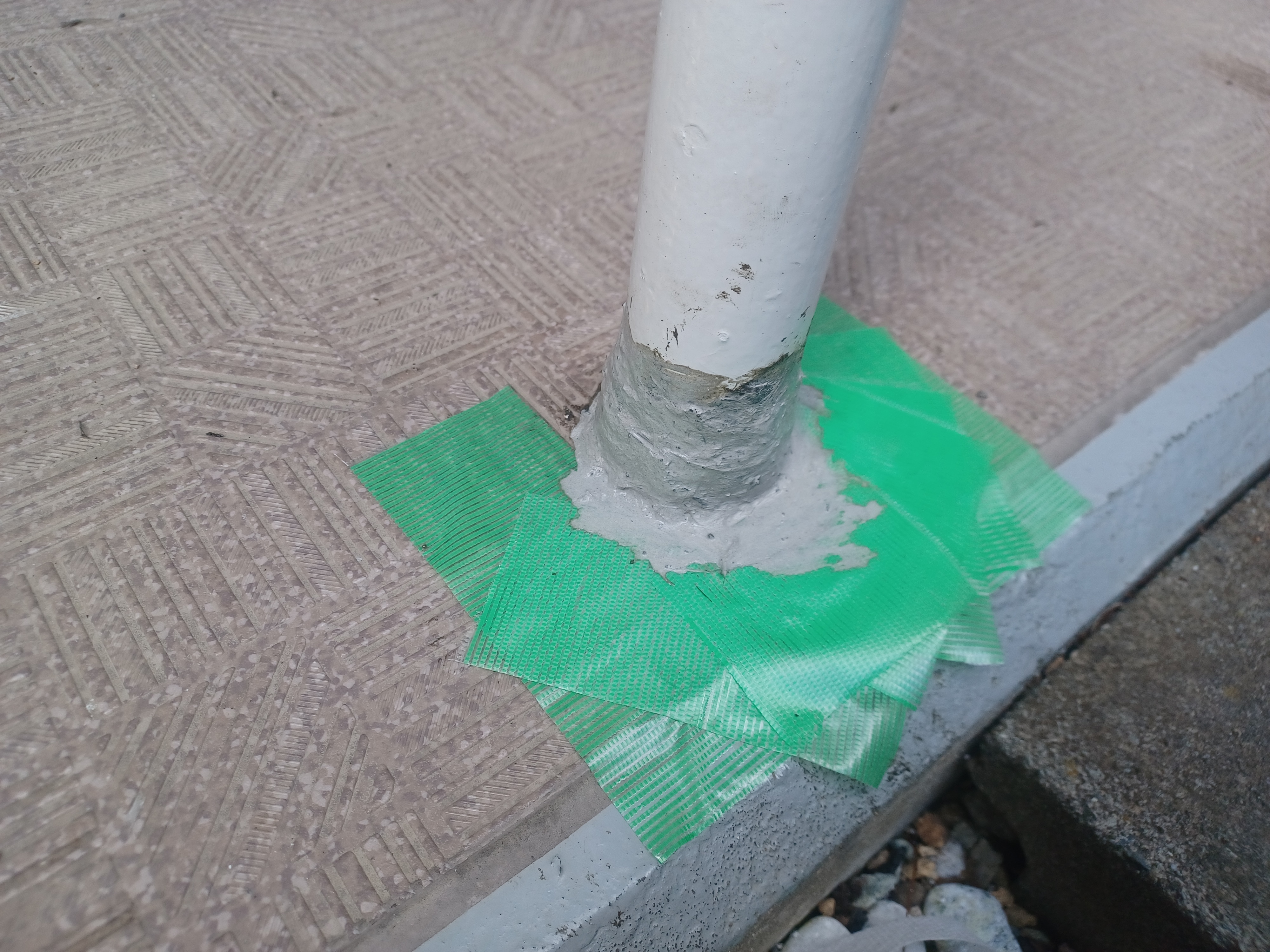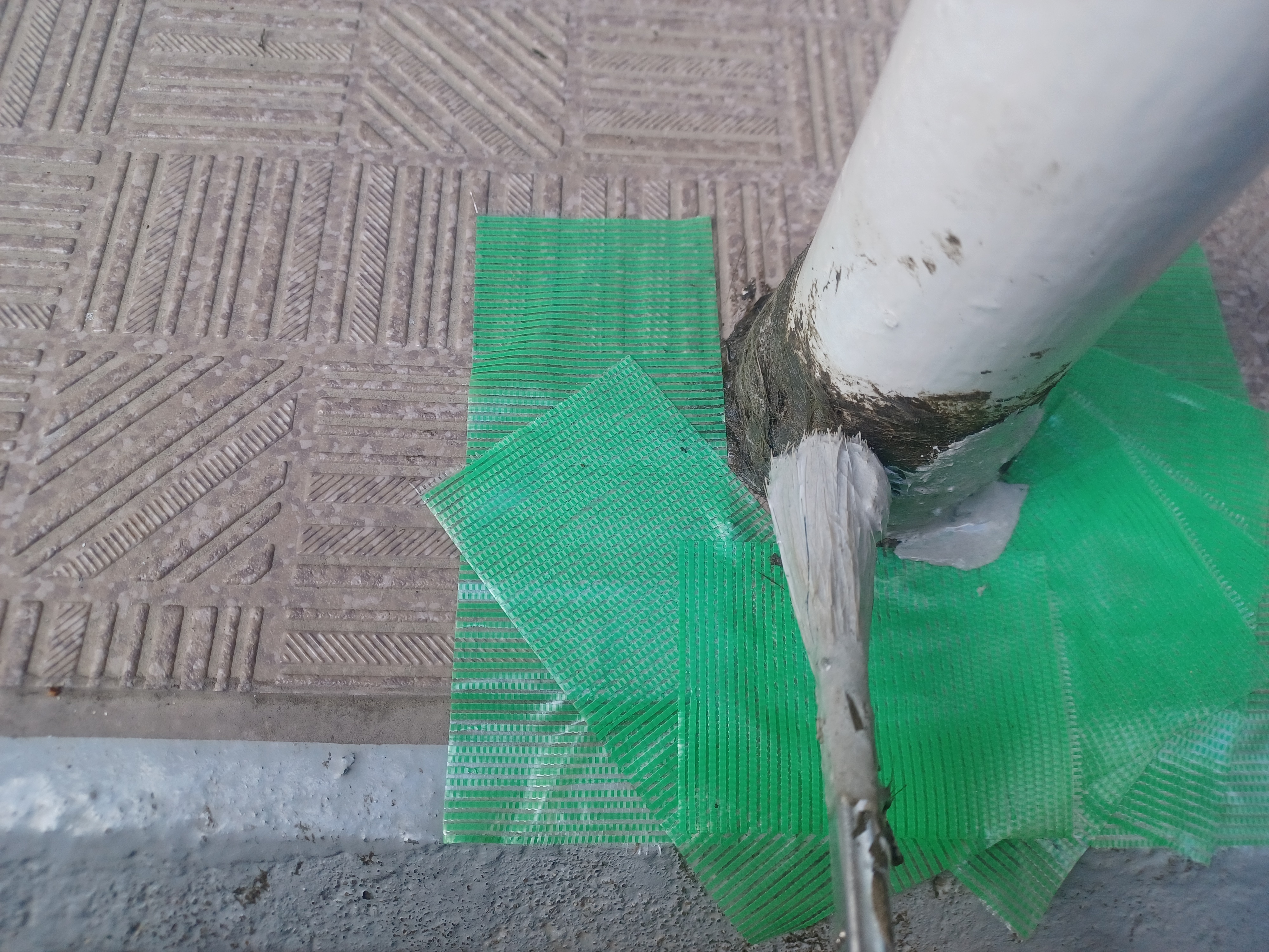 ソンソラテープを貼る際の写真はバタバタして撮れませんでしたが、写真の樹脂モルタルの下にはソンソラテープが巻き付けられています。