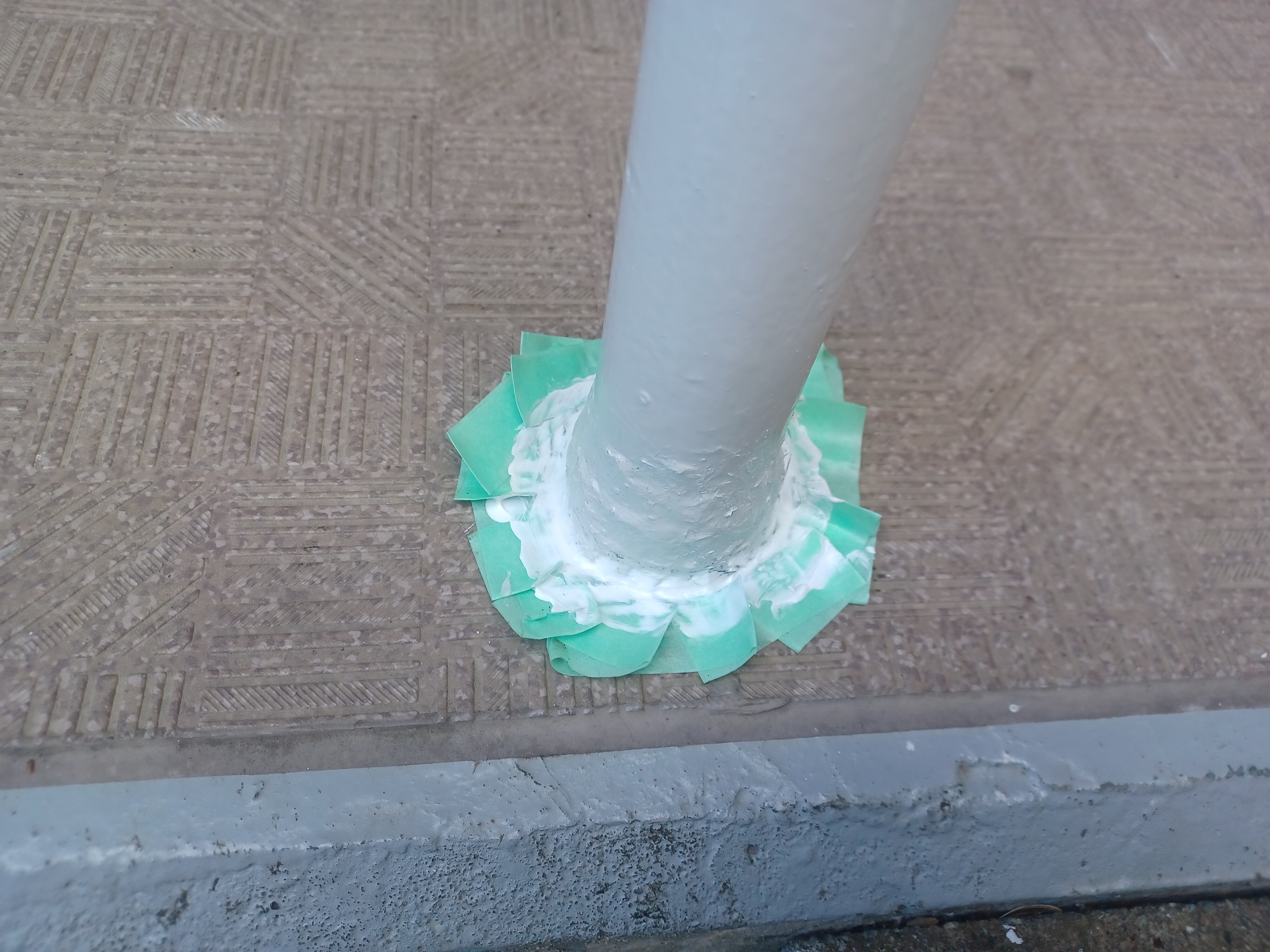 今回はアタックSPB工法でこの手摺の根元を動かないように固定させて塗装をさせていただきました。